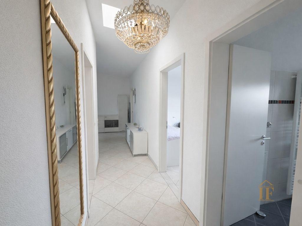 Besonders hervorzuheben sind die sehr hohen Decken, die den Räumen ein außergewöhnlich offenes Raumgefühl verleihen. Große Fensterflächen sorgen für viel Tageslicht, während Rollläden zusätzlichen Komfort und Sichtschutz bieten. Hochwertige Fliesenböden unterstreichen zudem den gepflegten Gesamteindruck der Wohnung.