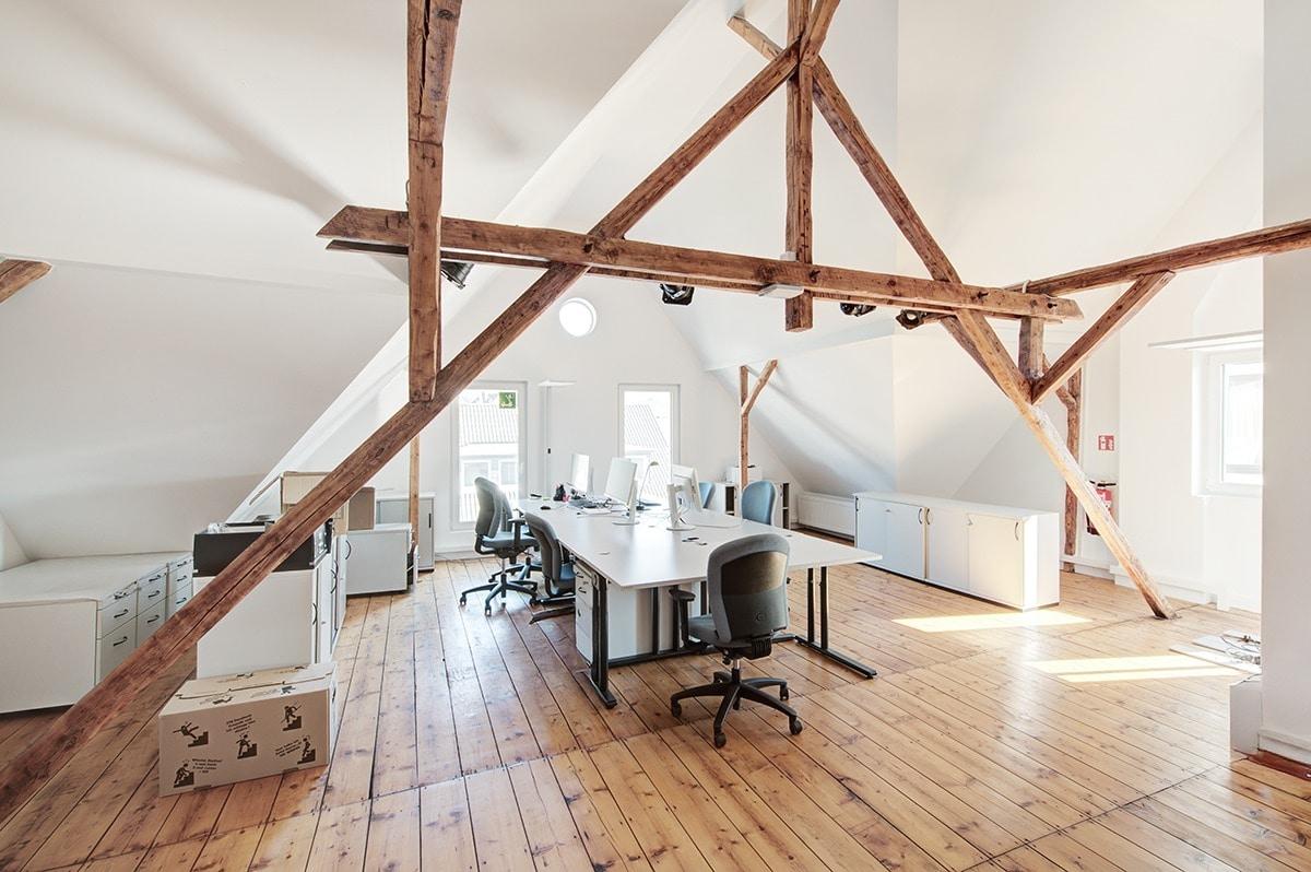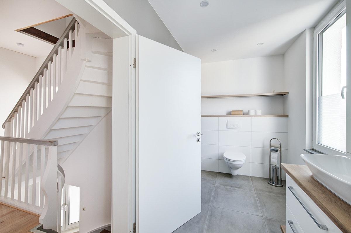 Im Erdgeschoss stehen zwei großzügige Wohnräume, Küche mit Speisekammer und das Gäste-WC zur Verfügung. Über die hintere Tür erreichen Sie die Veranda und den Garten mit Terrasse. Im 1. Obergeschoss befindet sich ein modernes und sehr großzügiges Badezimmer mit bodengleicher Dusche, Wanne, WC und zwei Waschbecken, sowie drei große Schlafzimmer. Das Mansarddach wurde 2016 vollständig ausgebaut und bietet einen wunderschönen, lichtdurchfluteten Raum mit sichtbarem Dachgebälk und Dielenböden. Ein weiteres modernes Duschbad rundet das Raumangebot ab.