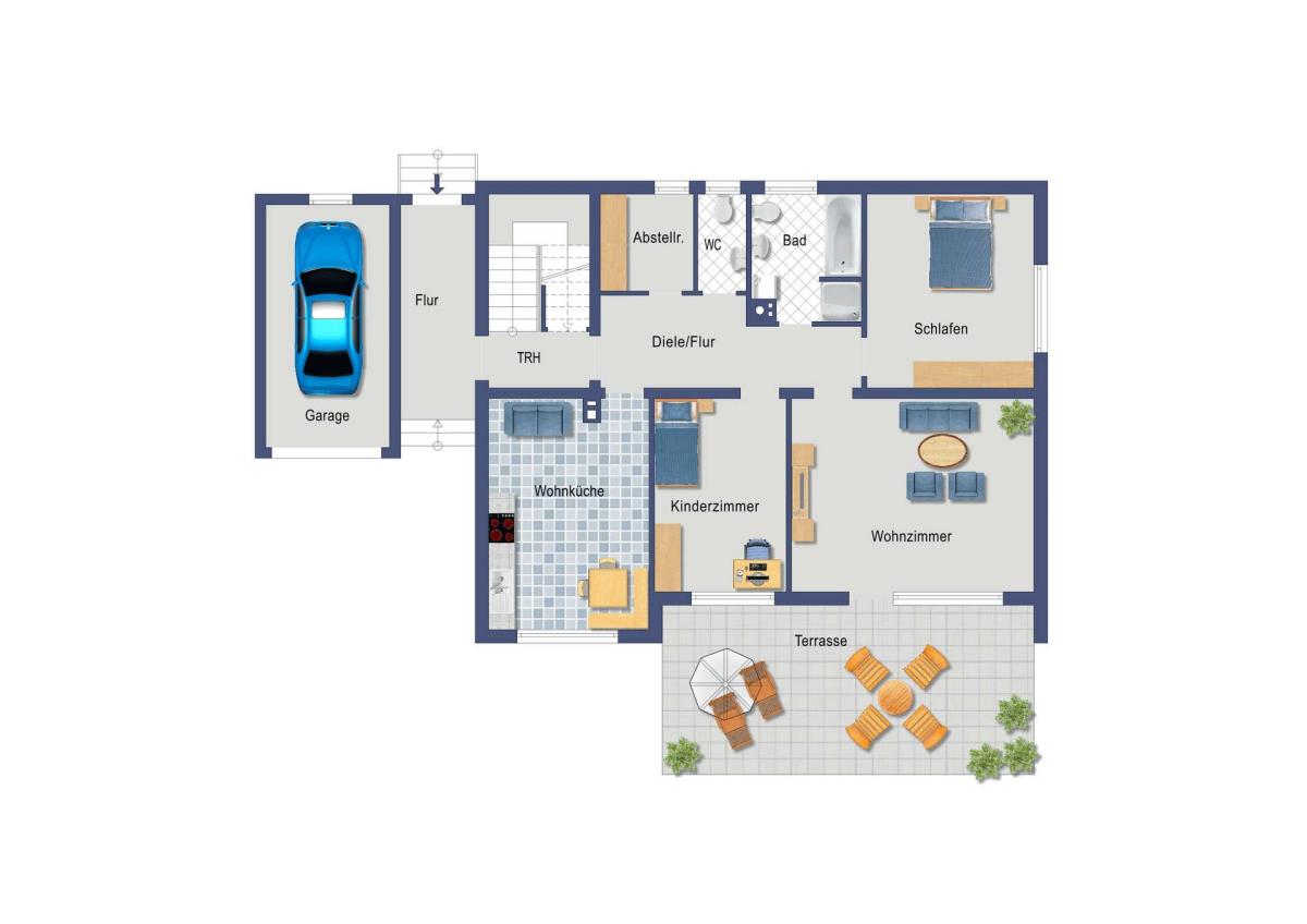 - EG: Helle 3-Zimmer-Wohnung mit Wohnküche, Sonnenterrasse und Südgarten, Wohnfläche ca. 104,95 m²