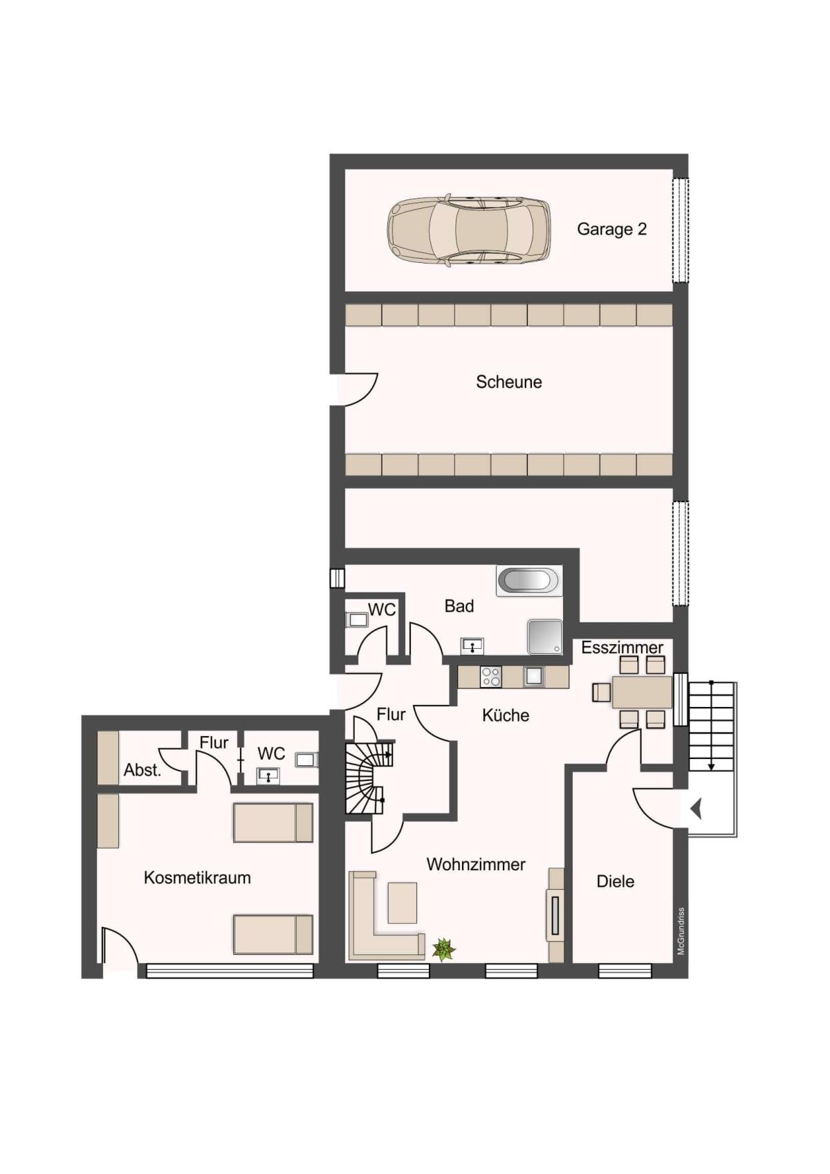 Bei dem hier angebotenen Objekt handelt es sich um ein Gebäudeensemble im Herzen von Dernbach. Es besteht aus drei Gebäudeteilen: Das Wohn- und Geschäftshaus (Ursprungsbaujahr 1865, Umbau nach Brand 1981, Anbau 1990) beinhaltet ein Griechisches Restaurant (seit 1991), die Pächterwohnung und 8 weiteren Wohnungen. Das zweite Gebäude ist ein Wohnhaus (Bj. 1964) mit vielseitig nutzbaren, großen Lagerflächen im Keller. Hier befinden sich im Obergeschoss die Hauptwohnung und im Erdgeschoss drei Appartements und ein Büro. Ein weiteres Einfamilienhaus (Bj. ca. 1930) mit Scheune, Schuppen und einer Ladenfläche runden das Angebot ab.
