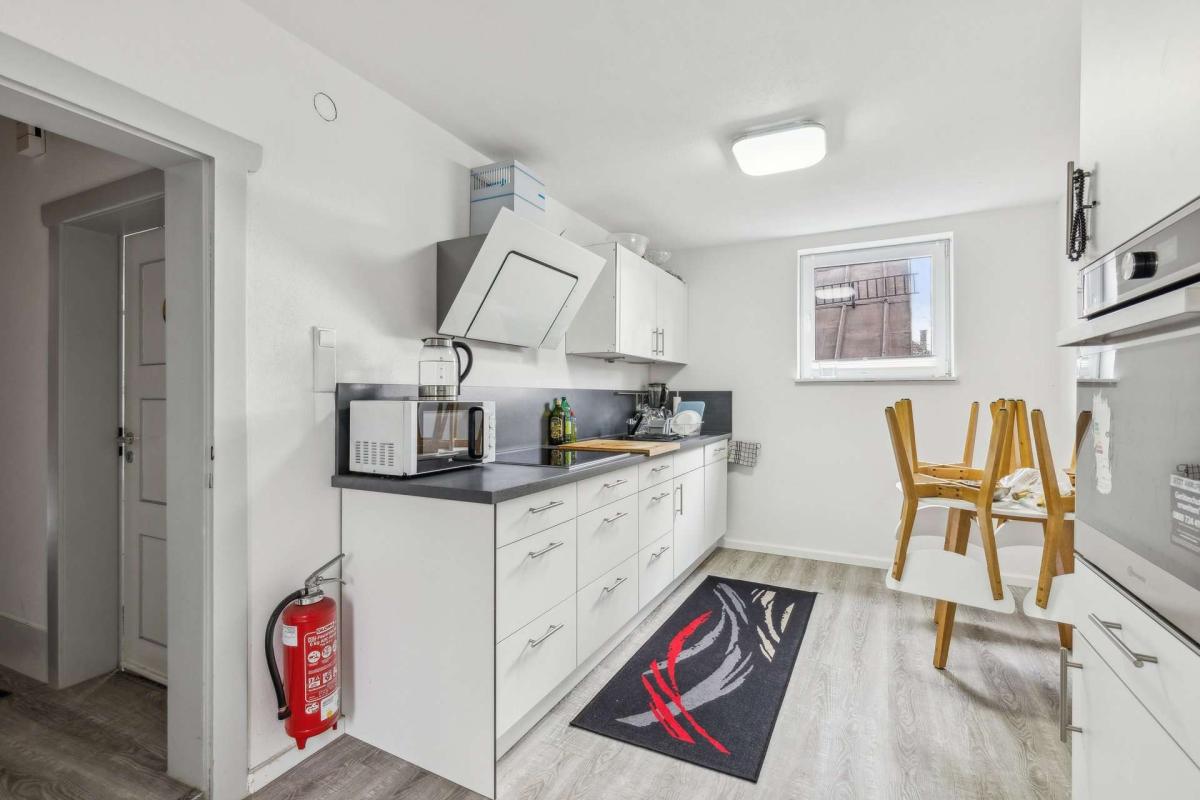 Auf dem hinteren Grundstücksteil befindet sich ein weiteres, eigenständiges Wohnhaus mit ca. 110 m² Wohnfläche, das ursprünglich um 1750 errichtet und etwa 1945 erweitert wurde. Dieses bietet zusätzliches Entwicklungspotenzial. Aktuell ist das Gebäude noch vermietet, wird voraussichtlich jedoch ebenfalls geräumt übergeben. Es umfasst ein kleines Apartment sowie eine größere Wohneinheit in den oberen Etagen. Genehmigungsrechtlich ist das Haus als Einfamilienhaus eingestuft. Im Erdgeschoss stehen darüber hinaus umfangreiche Nutzflächen zur Verfügung.