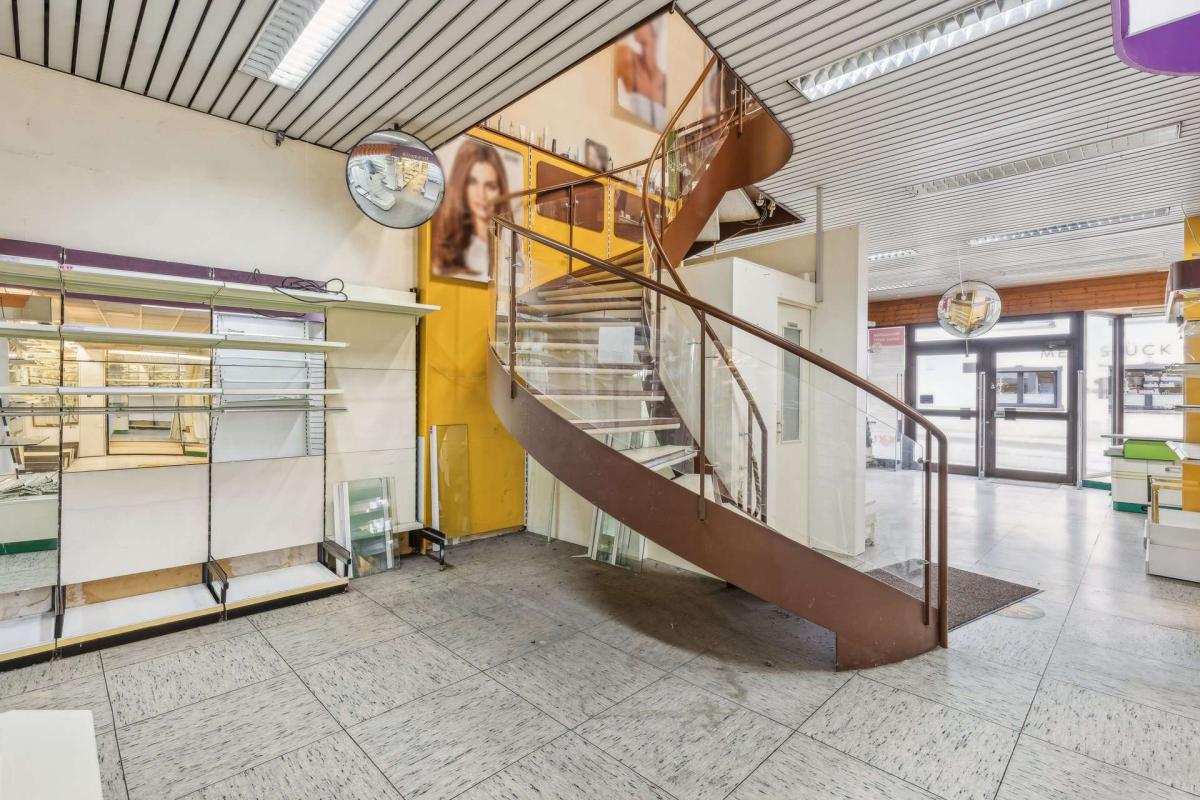 Im Erdgeschoss befindet sich eine großzügige, flexibel nutzbare Gewerbefläche mit guter Sichtbarkeit und Außenwirkung. Auch im Obergeschoss stehen weitere Gewerbeflächen zur Verfügung, in denen derzeit noch ein Friseursalon betrieben wird – ideal für eine Fortführung der gewerblichen Nutzung oder die Umsetzung alternativer Konzepte. Die Gewerbefläche beträgt insgesamt ca. 188 m².