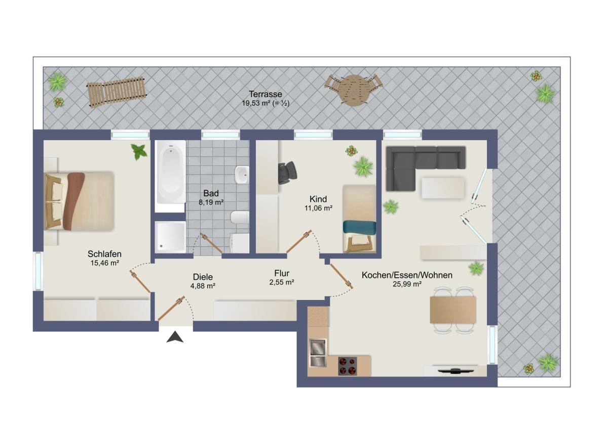 Moderne 3-Zimmer Wohnung mit XXL Terrasse in Nittendorf inkl. zwei Stellplätzen