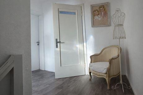 Flur mit PVC-Boden und Gewebetapete;
