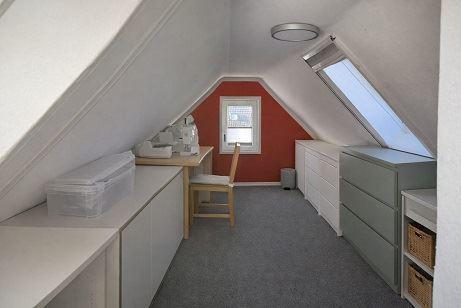 Im Dachspitz, den Sie über eine weitere Holztreppe erreichen, ist ein weiteres ausgebautes Zimmer mit niedriger Stehhöhe vorhanden.