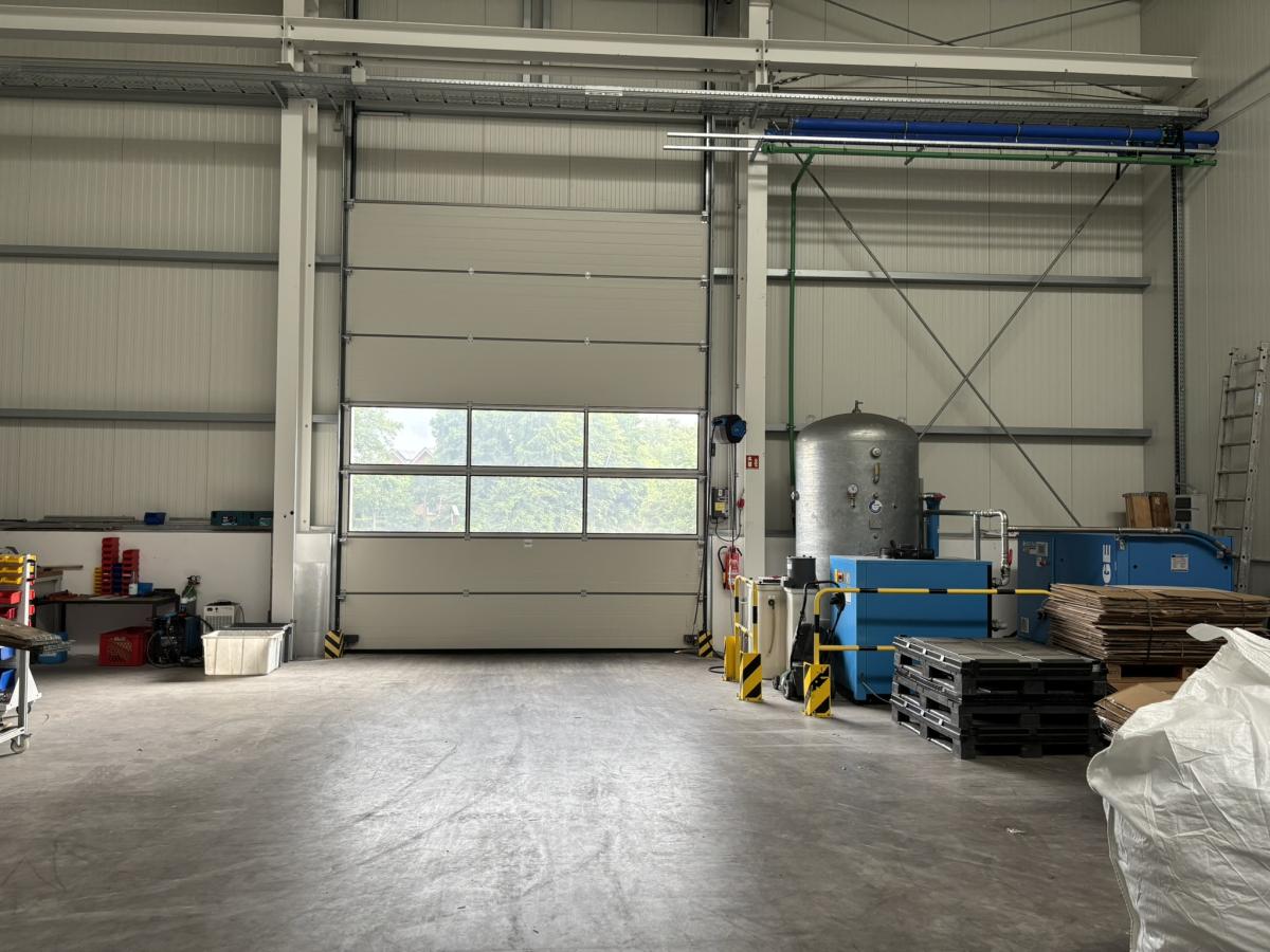 Halle mit Personaltoilette. Elektrische Rolltore.