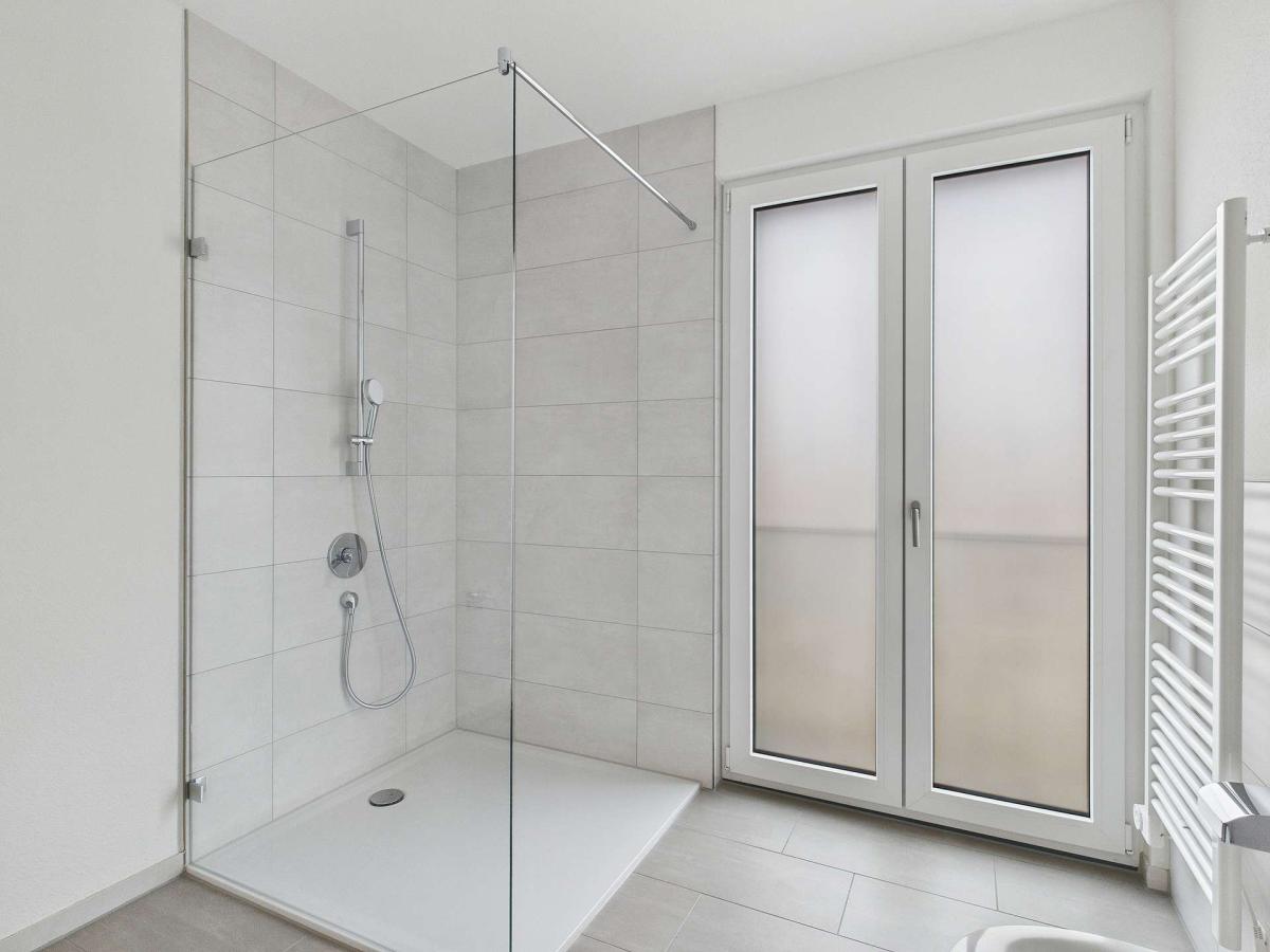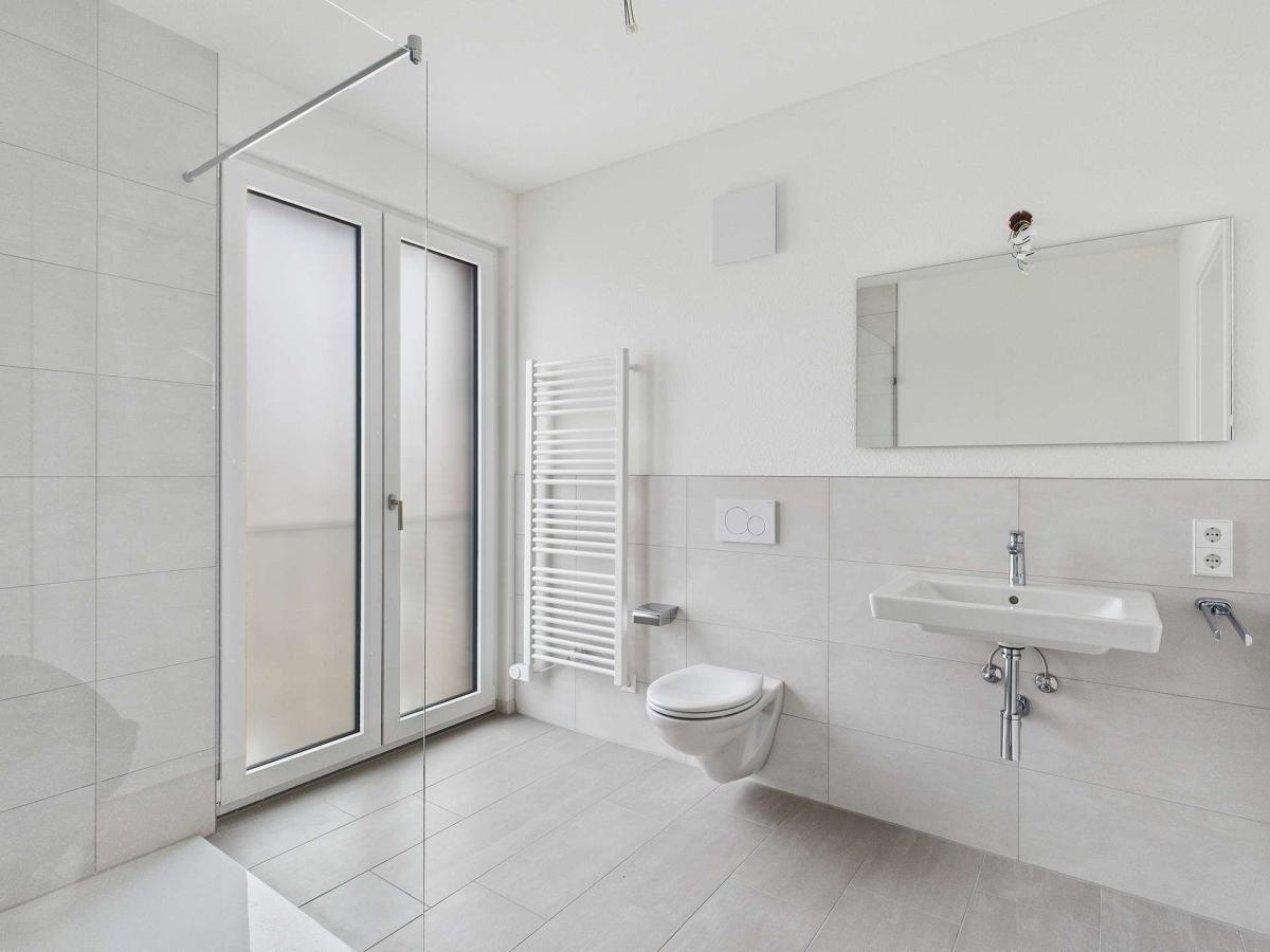 Ebenerdige Duschen, Handtuchheizkörper und große Wand- und Bodenfliesen sorgen nicht nur für ein tolles Design, sondern auch für einen modernen Wohnkomfort im Badezimmer.