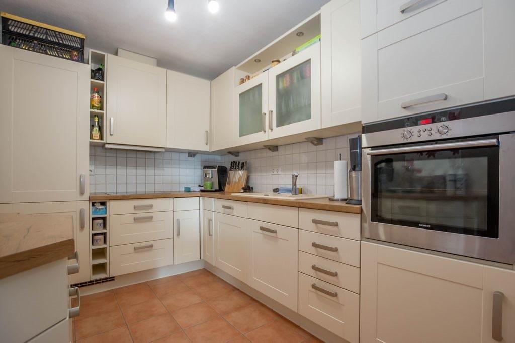 Das großzügige Wohn- und Esszimmer ist der Mittelpunkt der Wohnung. Von hier aus haben Sie direkten Zugang zum schönen Balkon, der zum Entspannen an der frischen Luft einlädt – perfekt für kleine Auszeiten oder gemütliche Abendstunden. Die Wohnung verfügt über eine kleine, funktional geschnittene Küche, ausgestattet mit einer gepflegten Einbauküche, die im Angebot enthalten ist.