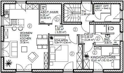 - die beiden Dachgeschosswohnungen mit je einem Balkon