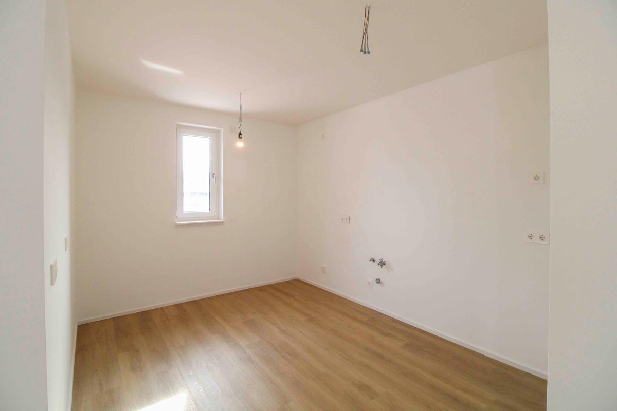 Das Badezimmer ist mit Dusche und Waschmaschinenanschluss ausgestattet, zusätzlich steht ein Gäste-WC zur Verfügung. Hochwertige Details wie Fußbodenheizung, Holzparkett sowie Smart-Living-Elemente sorgen für modernen Wohnkomfort. Abgerundet wird das Gesamtbild durch den freien Ausblick, der Ihrem Zuhause eine besonders angenehme Atmosphäre verleiht.