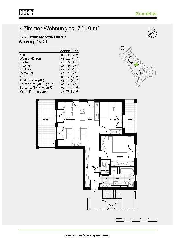Das Objekt befindet sich in der ÖkoSiedlung. Diese befindet sich in Friedrichsdorf an der Homburger Landstraße beidseitig des Petterweiler Holzweges. Nach Süden hin schließt das Areal an die Kernstadt Friedrichsdorf an, das Zentrum ist zu Fuß in wenigen Minuten zu erreichen. Durch kurze Wege zum Hauptbahnhof Friedrichsdorf und zum Bahnhof Köppern sind die Bürger der Stadt optimal an das öffentliche Verkehrsnetz angebunden. Der Hauptbahnhof Frankfurt ist in etwa 30 Minuten erreichbar. Zudem ist Friedrichsdorf durch Buslinien an Bad Homburg und die Umgebung angeschlossen. Der Autobahnanschluss an die A 5 ist fünf Kilometer, die Innenstadt Frankfurts gut 20 Kilometer entfernt.