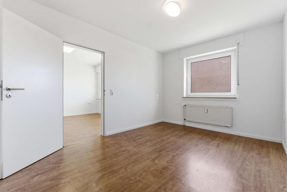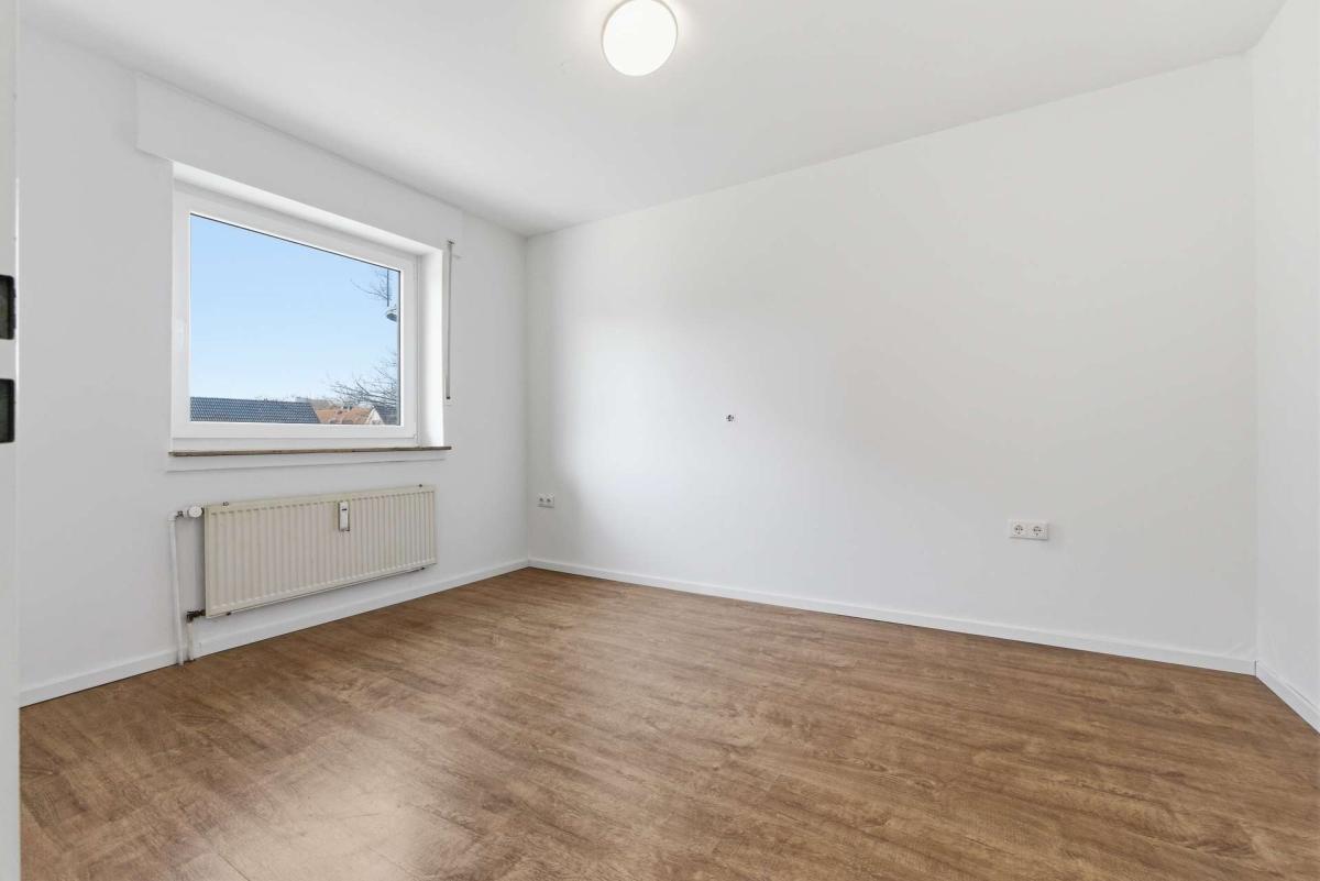 Der Wohn- und Essbereich bildet den zentralen Raum der Wohnung und bietet Platz für eine kombinierte Wohn- und Esssituation. Von hier aus besteht auch der Zugang zum Balkon, der zusätzlichen Freiraum im Alltag schafft. Das Schlafzimmer ist separat angeordnet und lässt sich gut als ruhiger Rückzugsbereich nutzen.