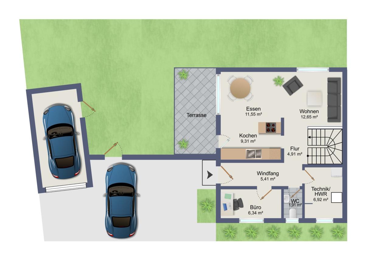 - des Weiteren befindet sich ein kleines Büro im Erdgeschoss – ideal für Homeoffice