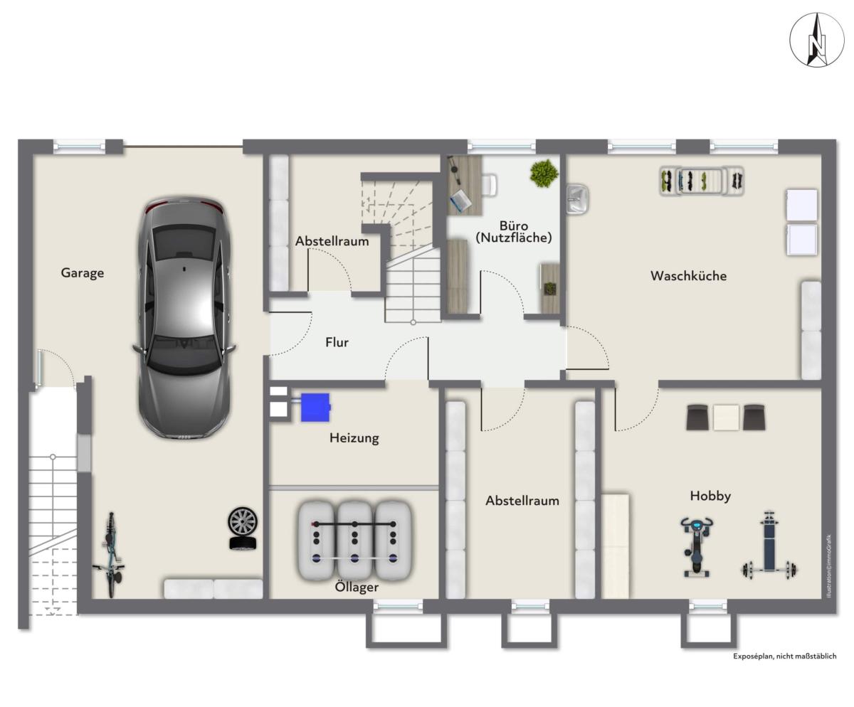 Dank der eigenen Garage mit direktem Zugang in den Kellerbereich genießen Sie hier einen hohen Komfort. Die Immobilie ist vollunterkellert und bietet somit weitere Nutzungsmöglichkeiten.