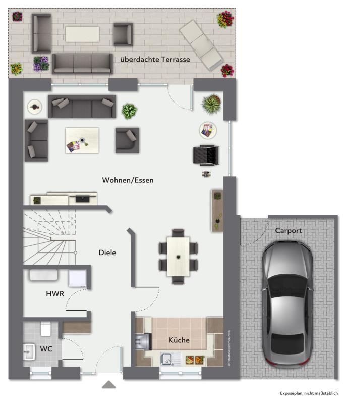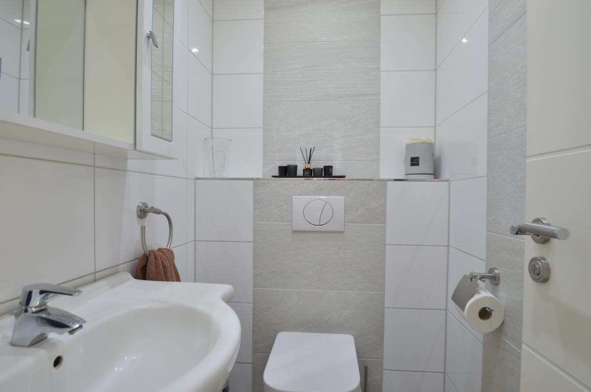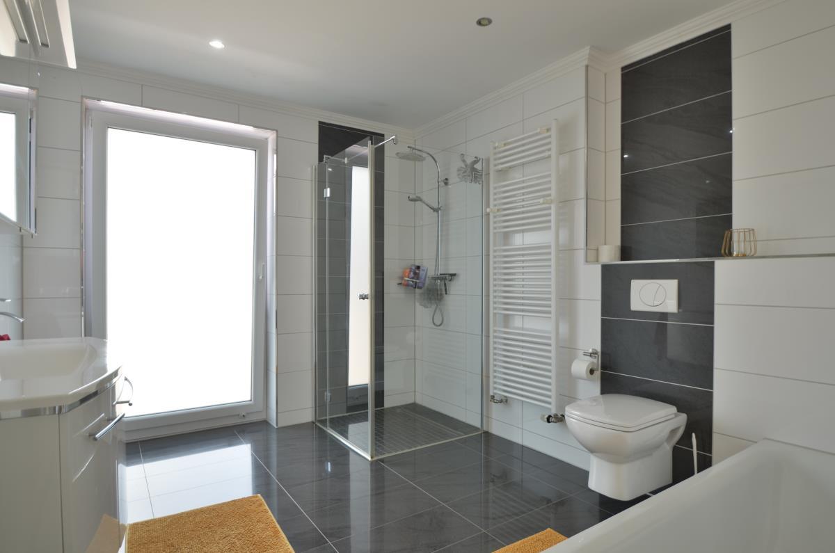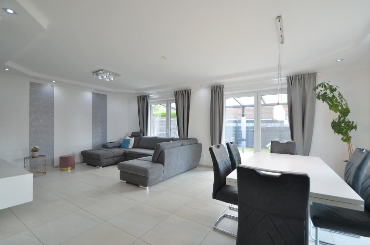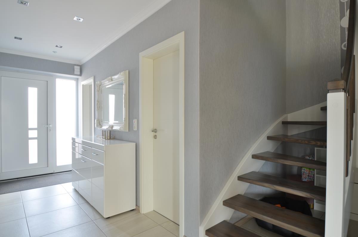 Moderne Haushälfte in ansprechendem Umfeld. Alles ist zeitgemäß und wirkt neuwertig. Die Ausstattung entspricht den aktuellen Anforderungen (Fußboden-Heizung, 3-fach-Verglasung, elektrische Rollläden, bodengleiche Dusche, offene Gestaltung von Küche und Wohnzimmer...