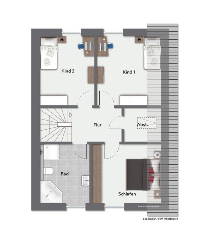 Zusätzlich zu den 4 Wohn- und Schlafzimmern gibt es im DG einen Abstellraum, der auch als Büro genutzt werden kann.