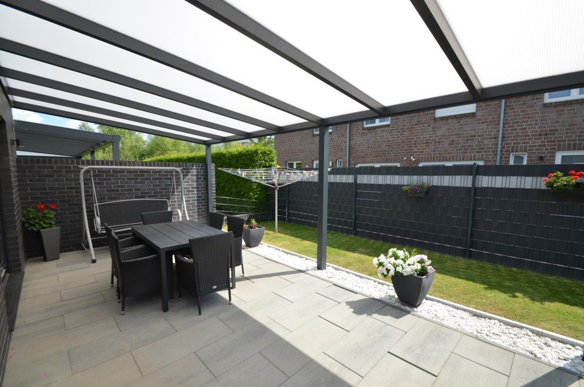 Hinter dem Haus gibt es eine schöne überdachte Terrasse sowie ein Gartenhaus.
