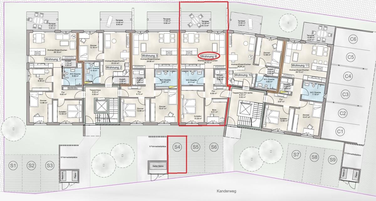 Die Wohnung Nr. 9 im Erdgeschoss verfügt über einen sehr ansprechenden Grundriss: