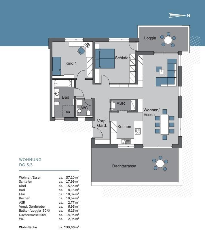 Die auf drei Geschossen um einen Lichthof gruppierten 2,5- bis 4,5-Zimmer-Wohnungen bieten mit einer Wohnfläche von ca. 58 m² bis ca. 133 m² viel Platz und Komfort für Singles, Paare und Familien. Jede Wohnung verfügt über eine moderne Ausstattung und einen Balkon oder eine Terrasse. Erreicht werden die Wohneinheiten über einen Laubengang, von dem aus der architektonisch besondere Innenhof bewundert werden kann.