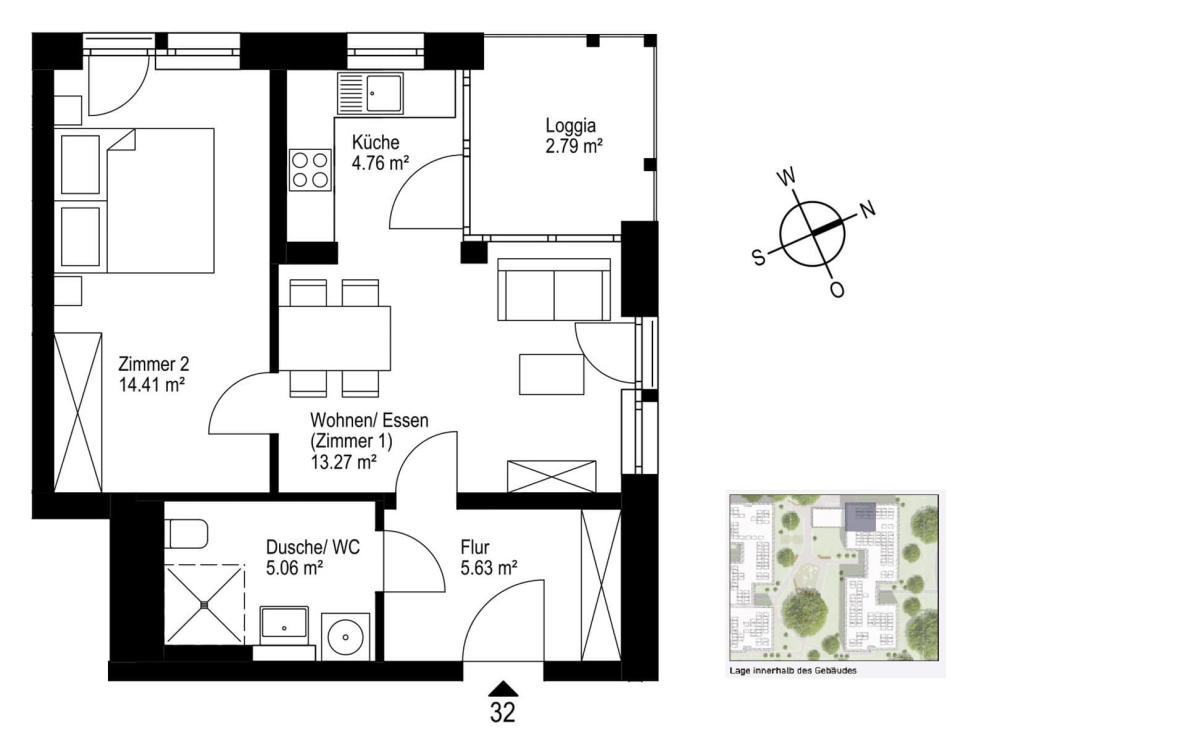 - Jede Wohnung mit privatem Außenbereich: Terrassen im Erdgeschoss, Loggien in den Obergeschossen