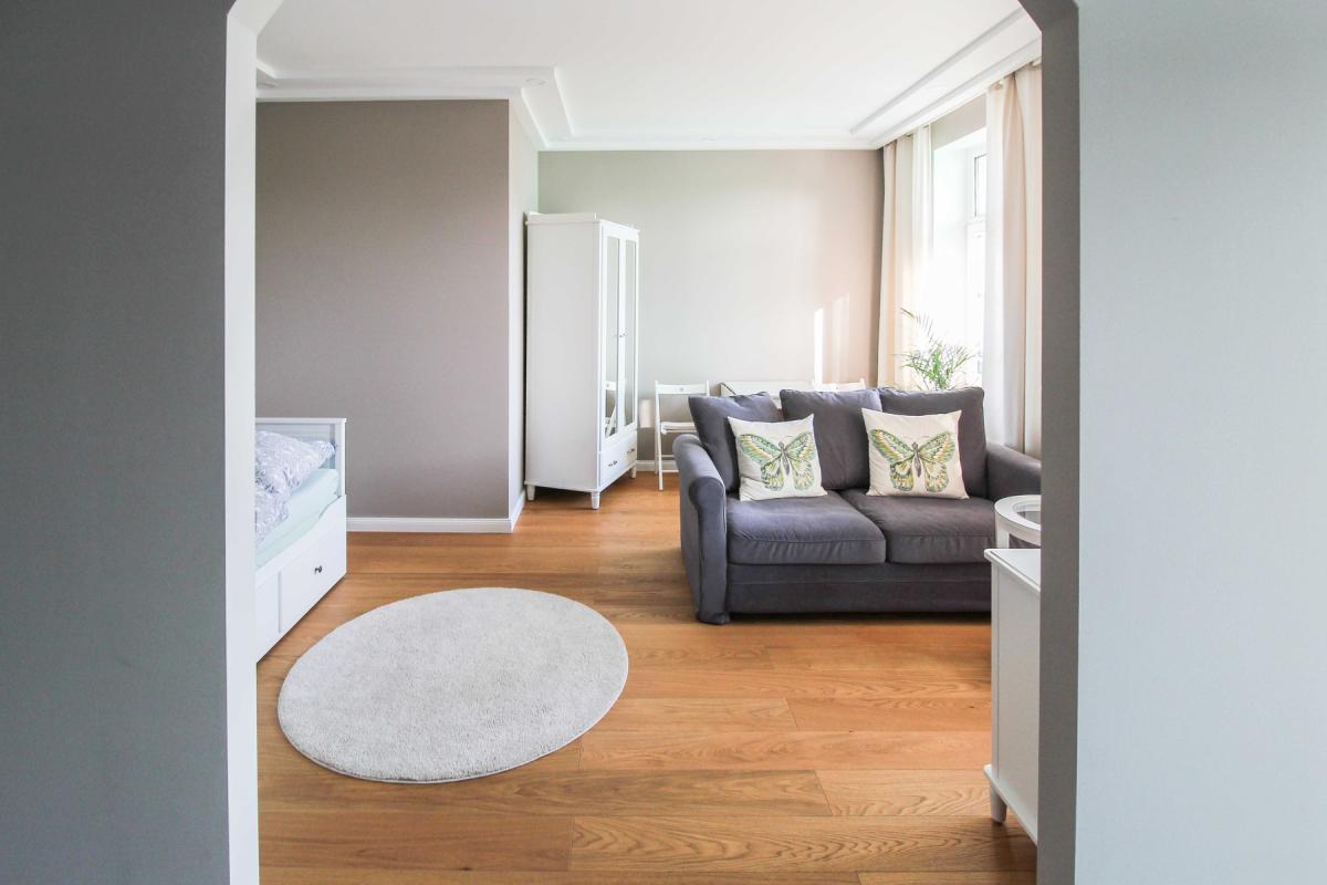 - Möblierte Wohnung mit einer Einbauküche und Holzparkettböden, Balkon zum Innenhof