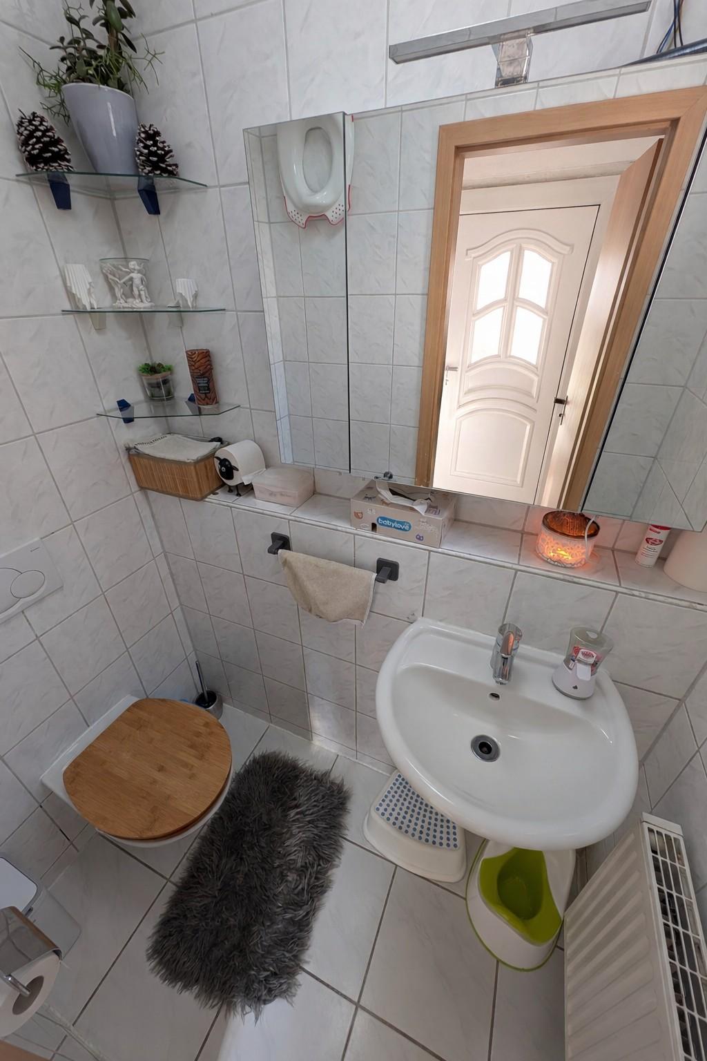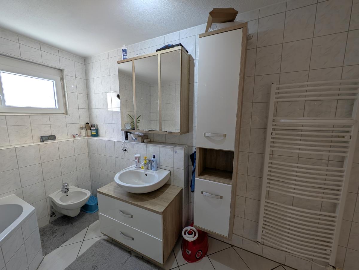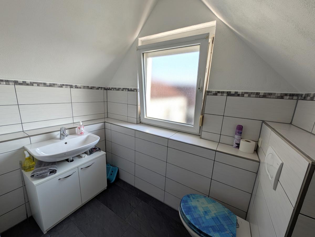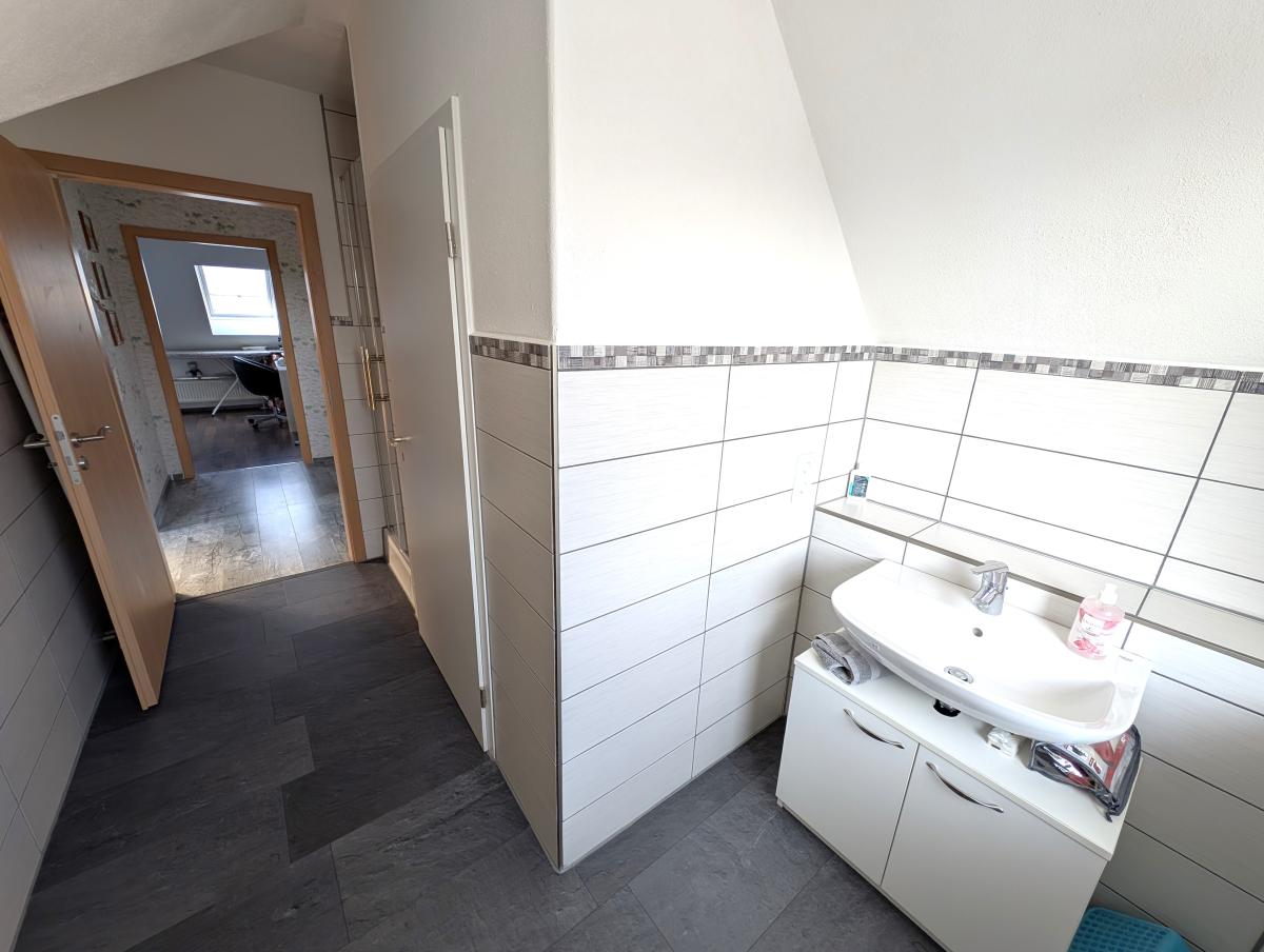Im Obergeschoss erwartet Sie ein hell gefliestes Tageslichtbad in zeitlos moderner Optik mit Dusche, Badewanne, Bidet, WC und Waschtisch – ein Ort zum Wohlfühlen. Das Dachgeschoss beherbergt ein weiteres, im Jahr 2025 neu gestaltetes Tageslichtbad mit Dusche, WC und Waschtisch. Große Dachflächenfenster sorgen hier für ein besonders angenehmes Lichtambiente.