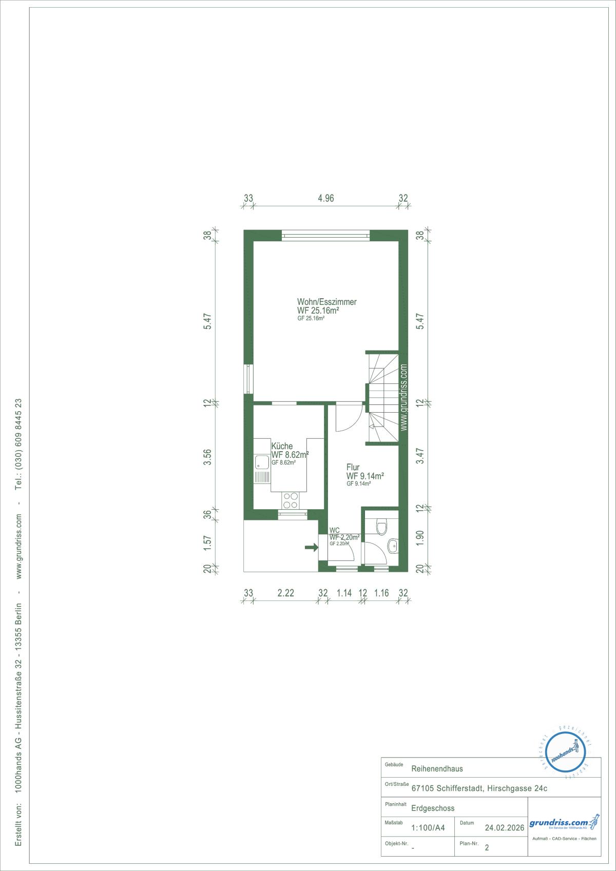 Teilfläche Grundstück Endhaus Nr.1 = ca. 162 m²