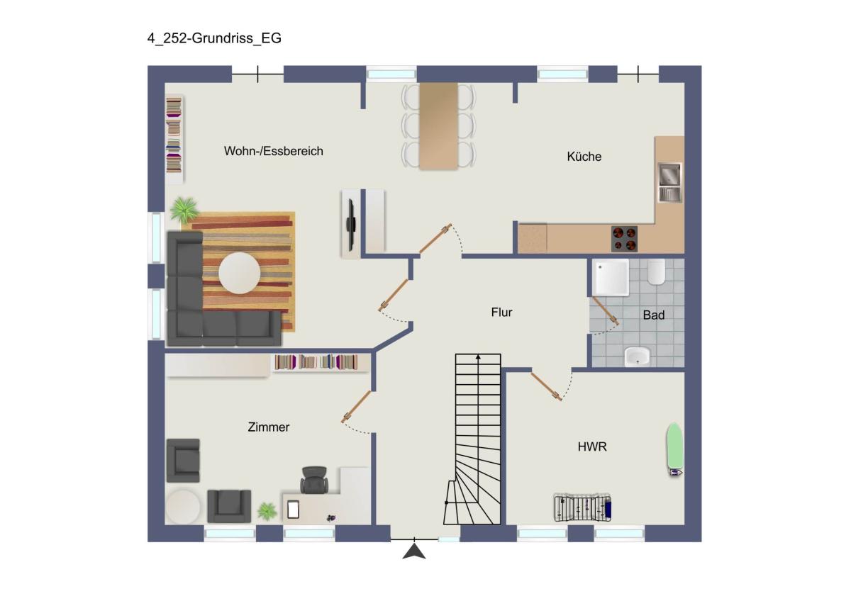 Dieses zunächst unscheinbare Häuschen überrascht im Innenbereich mit seinen 130 qm Wohnfläche. Hier finden Sie erstaunlich viel Platz, der sich vielleicht nicht auf den ersten Blick vermuten lässt. Die 130 qm verteilen sich auf einen offenen modernen Wohn-, Ess- und Kochbereich, einem Duschbad, einem Hauswirtschaftsraum und einem Schlafzimmer/Büro im Erdgeschoss. Außerdem umfassen sie im Obergeschoss zwei fertige Zimmer, die als Kinder-/Schlafzimmer oder Büro genutzt werden können. Hinzu kommen zwei weitere Zimmer, die derzeit als Ausbaureserve gehalten werden. Und das Beste: Wenn Ihnen der Platz immer noch nicht reicht, können Sie den geräumigen und stehhohen Spitzboden als Lagerfläche nutzen oder ebenfalls als Wohnraum ausbauen. Trotz der großzügigen Fläche geht die Gemütlichkeit bei diesem Haus nicht verloren.