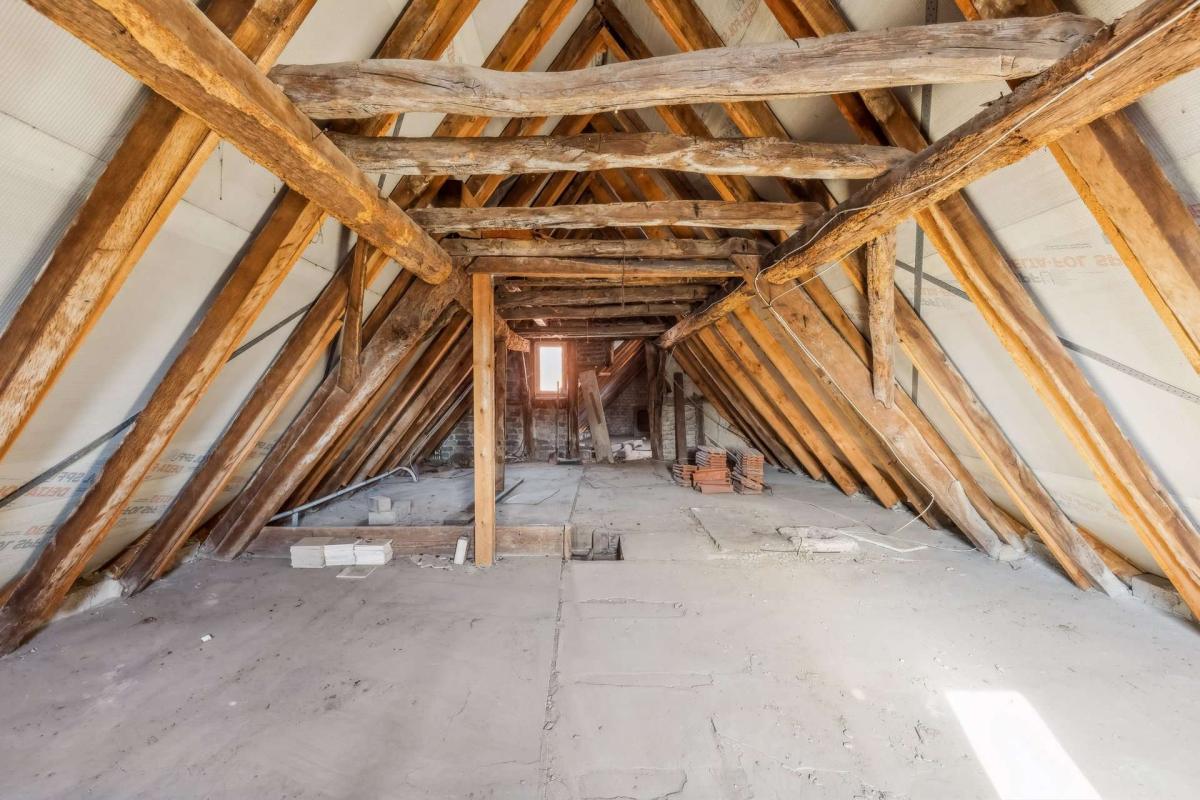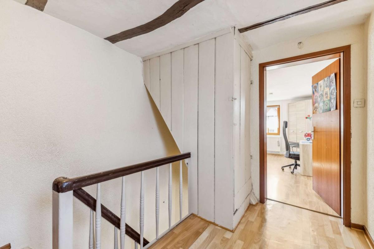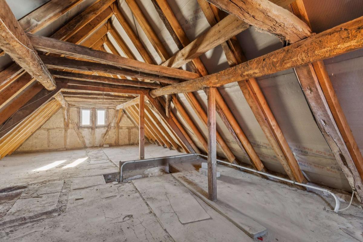 Im Obergeschoss stehen drei geräumige Schlafzimmer sowie das Badezimmer zur Verfügung. Zusätzlich ermöglicht eine vollwertige Eichen-Treppe den Zugang zum Dachboden, der bereits jetzt erstaunlich viel Stauraum bietet. Ein Ausbau des Dachgeschosses ist nach Rücksprache mit dem Bauamt und der Denkmalschutzbehörde grundsätzlich denkbar. Das Wohnhaus ist teilunterkellert und verfügt über einen baujahrtypischen Gewölbekeller, der zusätzlichen Stauraum bietet und den historischen Charakter des Hauses unterstreicht.