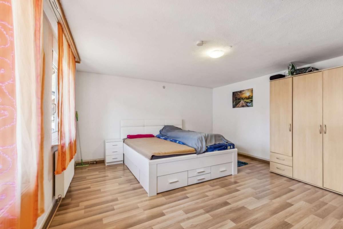 Das Wohnhaus verfügt über eine Wohnfläche von ca. 140 m², verteilt auf Erdgeschoss und Obergeschoss. Im Erdgeschoss empfängt Sie ein angenehm gestalteter Eingangs- und Flurbereich, der für das Baujahr eine ungewöhnlich Deckenhöhe aufweist. Von hier aus erschließen sich ein großzügiges und helles Wohnzimmer, ein Büro bzw. Durchgangszimmer, die Küche sowie die Waschküche, in der sich unter anderem die 2023 installierte Gasheizung befindet.