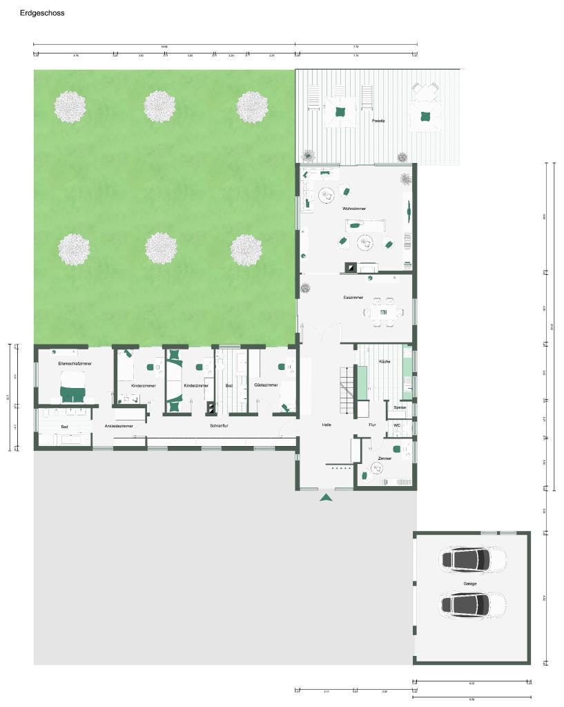 Das großzügige Grundstück (3.975 m²) ist mit einem großen EFH bebaut und kann mit einem weiteren Gebäude bebaut werden. Dies eröffnet die Möglichkeit einer Kombination von Wohnen und Arbeiten für Freiberufler oder für eine Praxis.