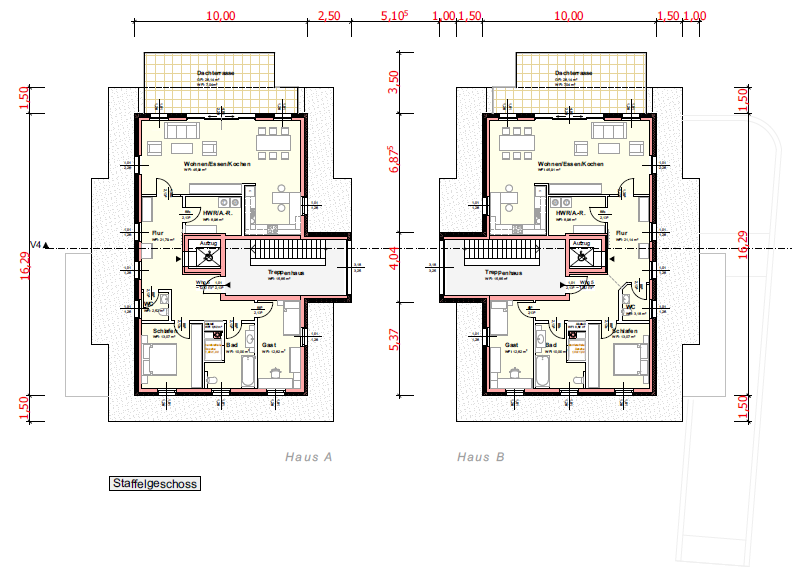 - 2 Vollgeschosse + 1 Staffelgeschoss je Gebäude + Vollunterkellert