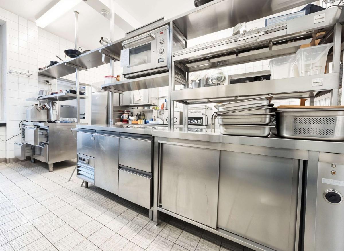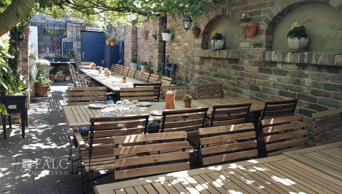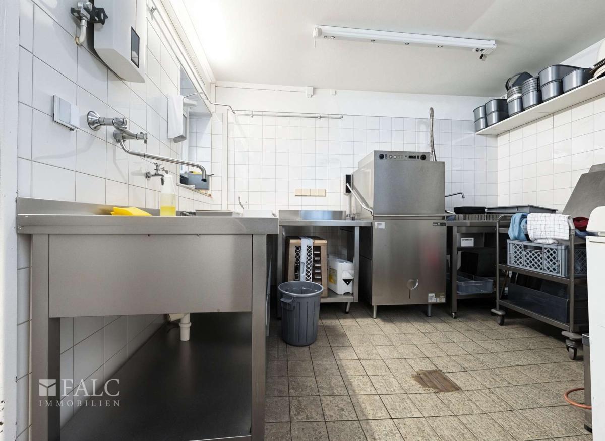 Der großzügige Gastraum bietet rund 60 Innenplätze und lädt Gäste zu geselligen Stunden ein. Ergänzt wird dieses Angebot durch eine attraktive Außenterrasse mit weiteren ca. 40 Sitzplätzen – ein idealer Ort für sonnige Nachmittage und laue Sommerabende. Die angrenzende Gewerbefläche von ca. 230 m² umfasst außerdem einen atmosphärischen Tresenbereich sowie eine voll ausgestattete Edelstahl-Profiküche, die Effizienz und Funktionalität auf höchstem Niveau ermöglicht.