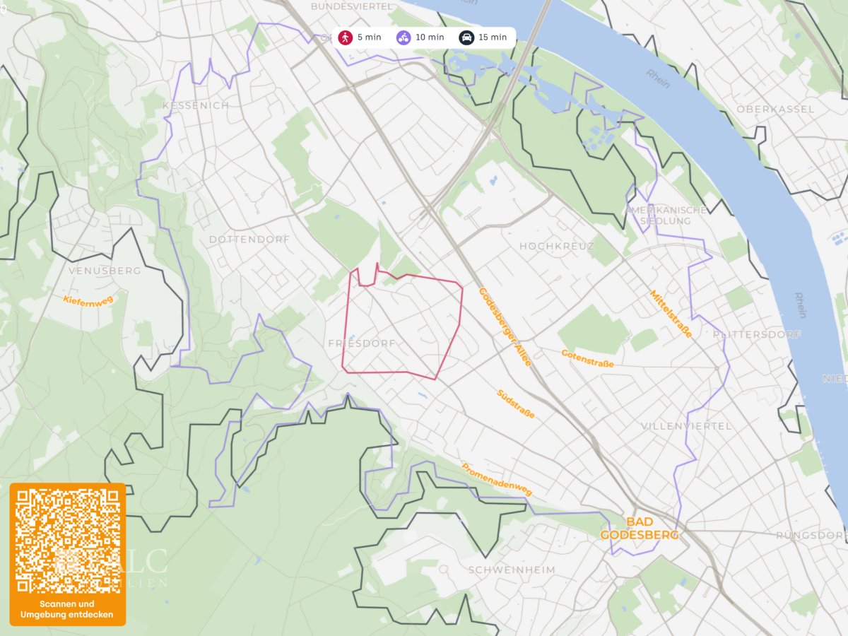 Die Immobilie befindet sich in einer äußerst attraktiven Lage in Bonn, die durch ihre hervorragende Infrastruktur und die Nähe zu zahlreichen Annehmlichkeiten besticht. Die Anbindung an den öffentlichen Nahverkehr ist optimal, mit mehreren Bushaltestellen und einer Tram-Station in fußläufiger Entfernung. Die Autobahnauffahrt A 562 ist ebenfalls schnell erreichbar, was eine ausgezeichnete Mobilität sowohl mit öffentlichen Verkehrsmitteln als auch mit dem Auto gewährleistet.