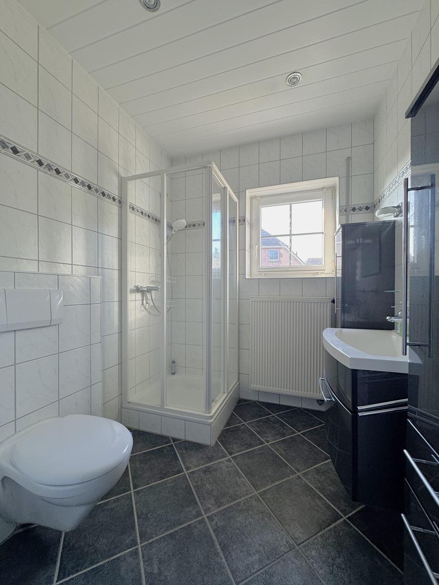 Im Erdgeschoss befindet sich ein Duschbad. Die Küche ist etwa 12 Jahre alt und funktional ausgestattet. Weiße Innentüren unterstreichen das freundliche Erscheinungsbild im Inneren des Hauses. Ein Glasfaseranschluss ist ebenfalls vorhanden.