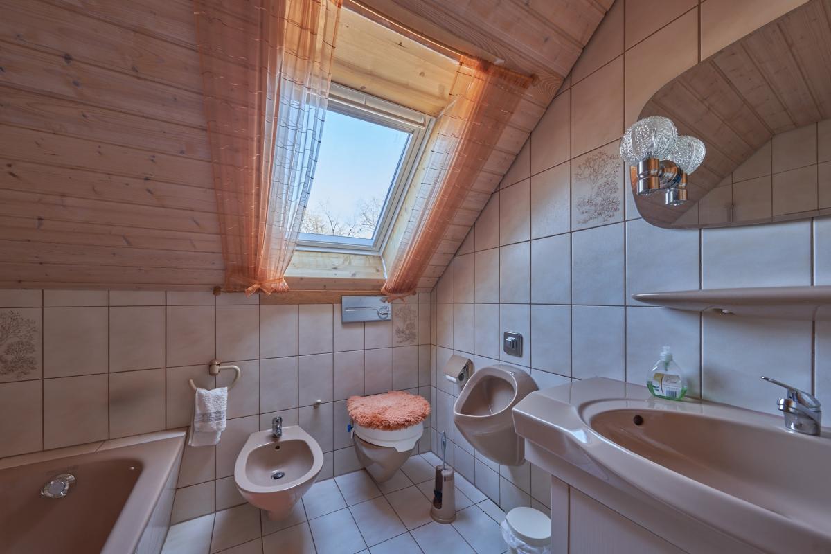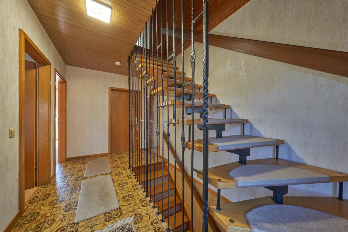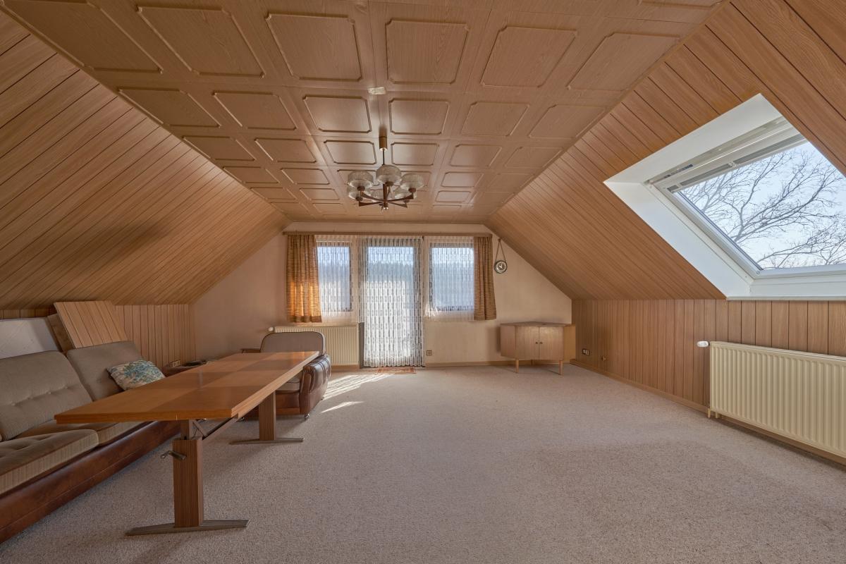 Im Erdgeschoss befindet sich ein offen gestaltetes Wohn- und Esszimmer mit Zugang zum Balkon. Dieser wurde im Jahr 2024 mit einem neuen Geländer und einem neuen Boden ausgestattet. Des weiteren befindet sich eine separate Küche (ink. EBK), ein im Jahr 2019 renoviertes Badezimmer mit begehbarer Dusche, ein Gäste-WC sowie drei Schlafzimmer auf dieser Etage. Über die Treppen im Flur gelangt man in das voll ausgebaute Dachgeschoss. Es bietet Ihnen zwei großzügige Zimmer, eine nach Süden ausgerichtete Loggia, eine Küche und ein Tageslichtbad. Im Untergeschoss stehen Ihnen drei weitere Zimmer, eine Terrasse mit neuem Boden (ebenfalls aus 2024), sowie ein Badezimmer zur Verfügung. Außerdem befindet sich der Heizraum sowie ein Kellerraum auf dieser Etage. Im Jahr 2017 wurde die Heizung auf Fernwärme (Biogas) umgestellt.