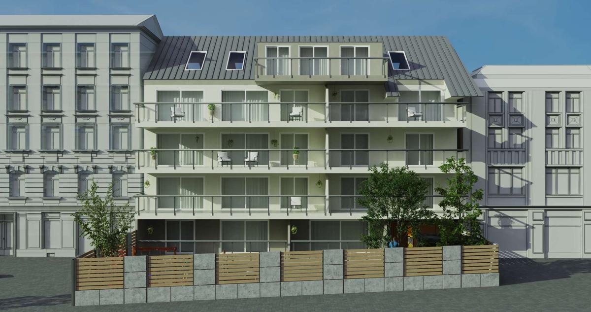 Auf einem ca. 523 m² großen Grundstück ist die Realisierung eines 13-Parteien-Hauses mit einer geplanten Gesamtwohnfläche von ca. 944 m² vorgesehen. Die genehmigte Planung umfasst Wohnungsgrößen zwischen ca. 60 m² und 110 m² – ein marktgängiger Mix für nachhaltige Vermietbarkeit.
