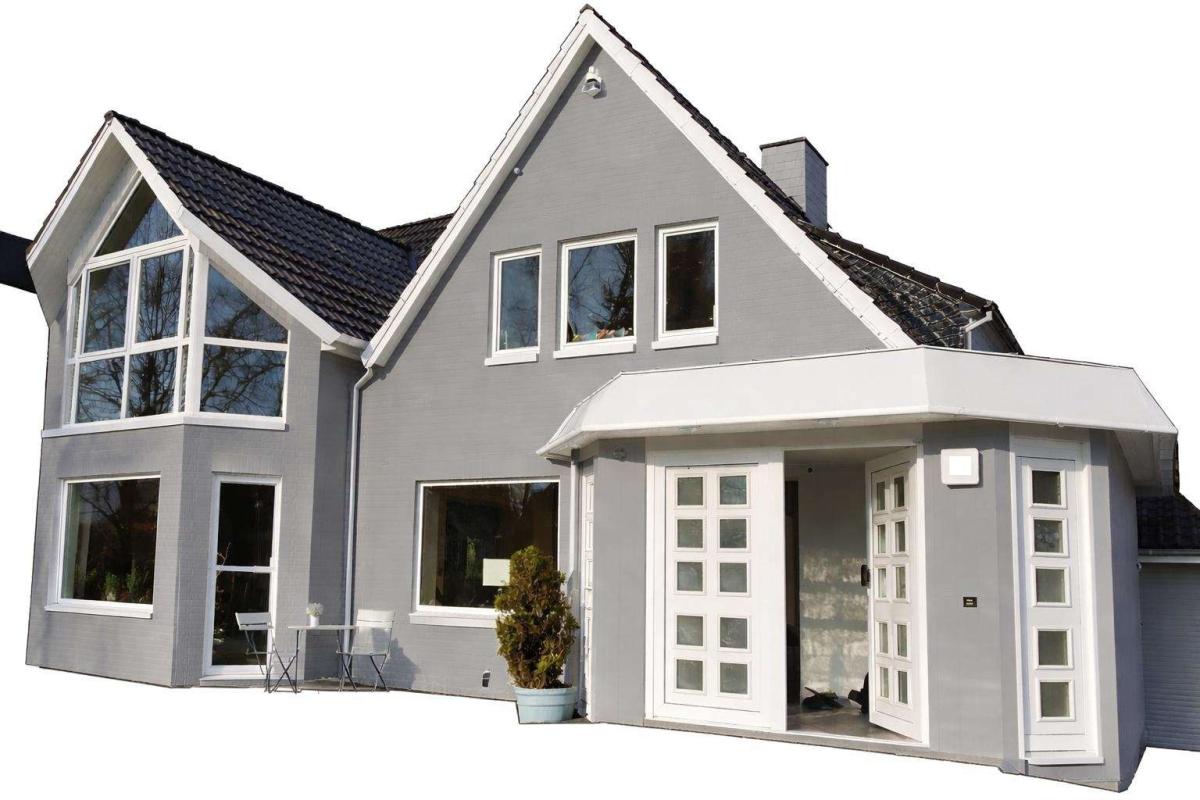Im Villenviertel wurde ein kleines Rotklinkerhaus aus 1951 im Jahr 1995 kernsaniert und durch einen großen Anbau in der Wohnfläche mehr als verdoppelt.