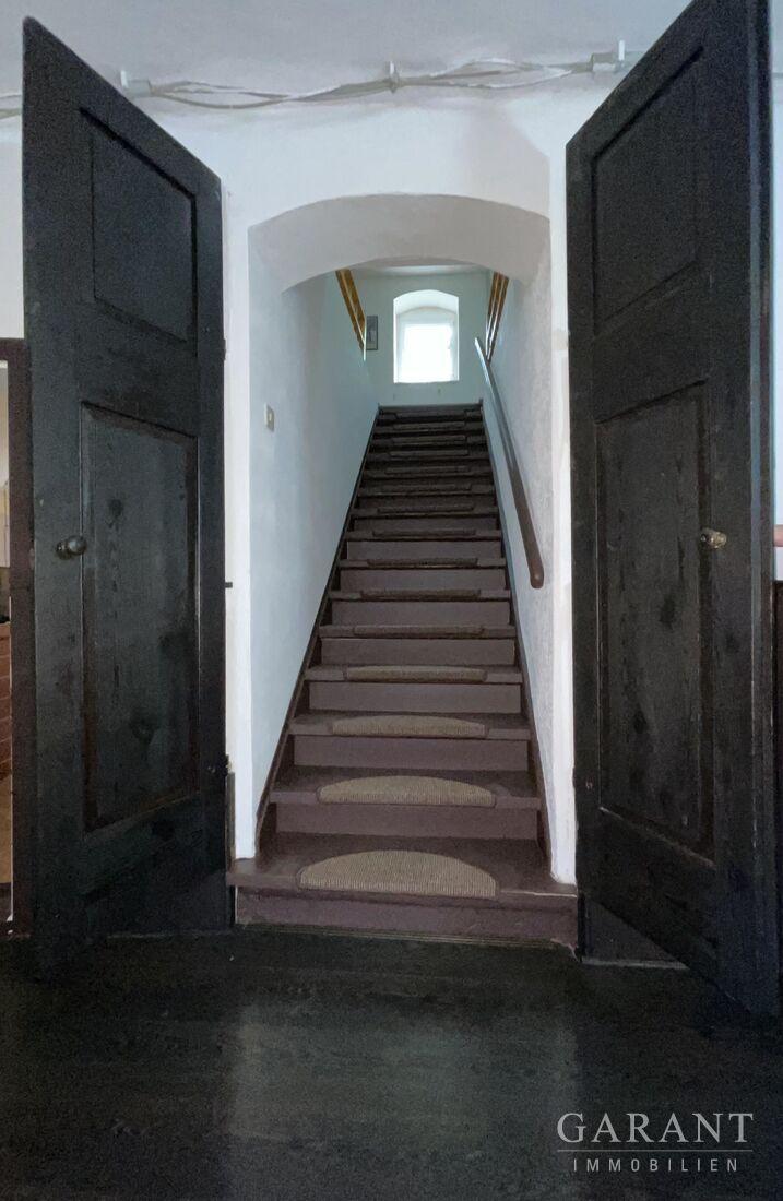 Gegenüber des Haupthauses befindet sich der ehemalige Wirtschaftsflügel - mit vier Garagen und einem großen Obergeschoss. Ob Atelier, Werkstatt, Gästeapartments oder Mikro-Ferienwohnungen: Der Ausbau eröffnet zahlreiche Nutzungsmöglichkeiten für private oder touristische Konzepte.