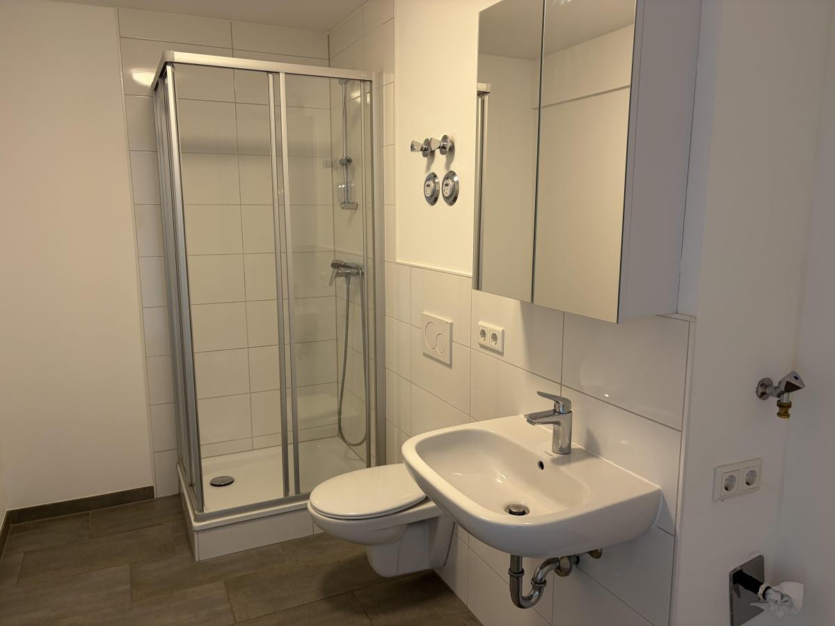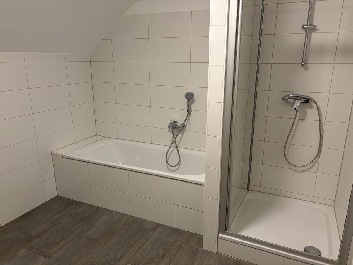 Die Wohn- und Schlafräume wurden mit Vinylböden ausgestattet. Eine Fußbodenheizung mit elektrischen Raumthermostaten sorgt für eine angenehme und effiziente Wärme. Im Badezimmer wurden Fliesen verlegt und weiße Sanitärobjekte eingebaut.