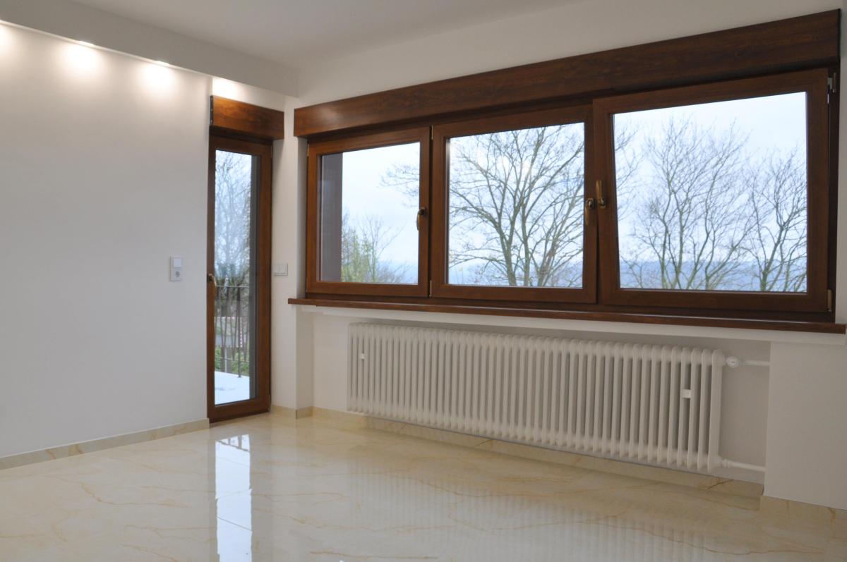 Diese Wohnung - wie auch die beiden andere Einheiten im Haus - wurde in 2020/2021/2022 komplett entkernt und dann saniert und modernisiert. Von den Fenstern (3-fach Verglasung) über Oberböden, Bäder, Elektroarbeiten, Heizkörpern etc. wurde hier alles auf Neubauniveau gebracht. Ihr Vorteil: Beleuchtung überwiegend vorhanden, moderne Einbauküche mit allen Geräten ist Bestandteil des Mietpreises, Bad und Gäste-WC hochwertig eingerichtet. Geräumiges Bad mit Wanne und Regenwalddusche. Hauseingangstür, Briefkästen etc. wurden ebenfalls erneuert. Im Eingangsbereich und im Treppenhaus sind noch Arbeiten erforderlich - dann wird es noch ansprechender. Kellerräume stehen nicht zur Verfügung. Aktuell wird auf wärmeres Wetter gewartet, um den Außenbereich fertigzustellen. Die spätere Nutzung einer Garage kann vereinbart werden.