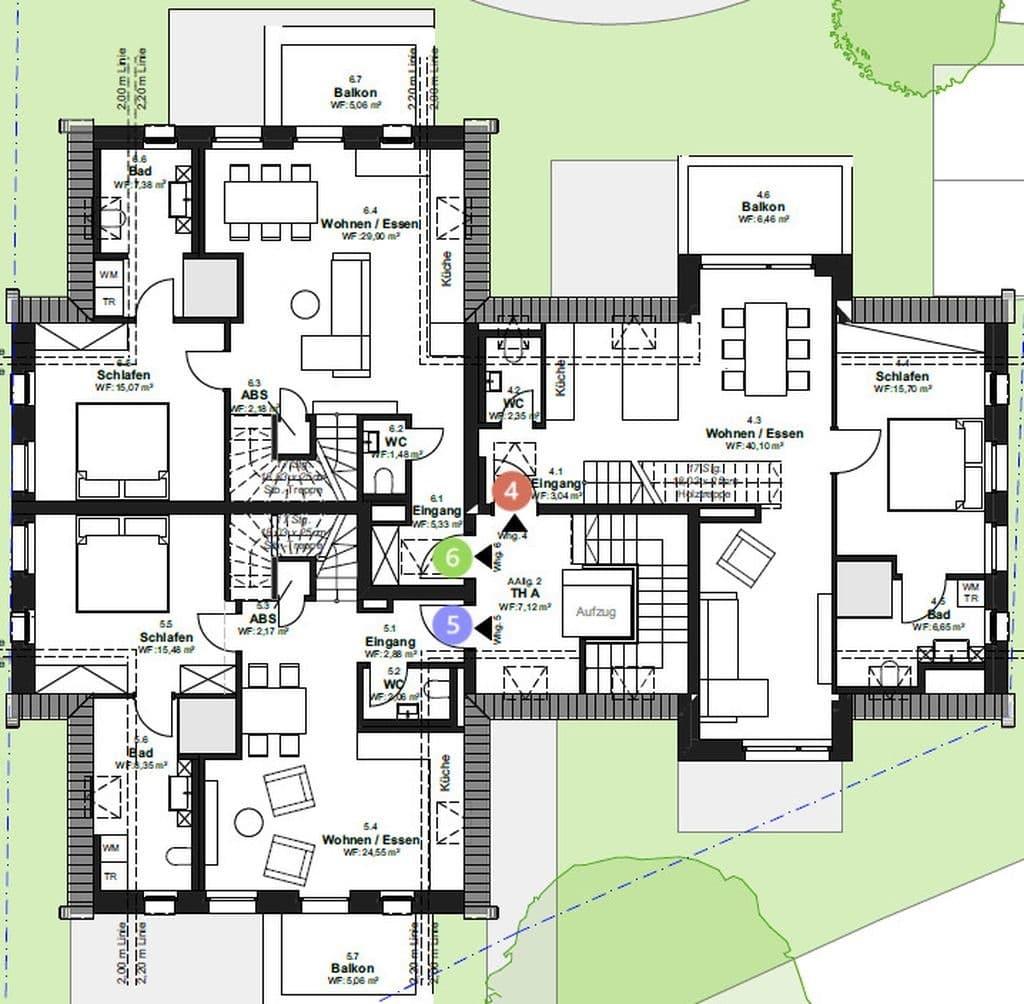 Die Beheizung des gesamten Gebäudes erfolgt über eine Sole Wasser Wärmepumpe. Der u.a. auch hier erforderliche Strom wird durch eine Photovoltaikanlage nebst Batteriespeicher zum größten Teil selbst erzeugt. Der Verbrauchsstrom wird über das sogenannte Mieterstrommodell separat zu einem vergünstigten Preis angeboten.