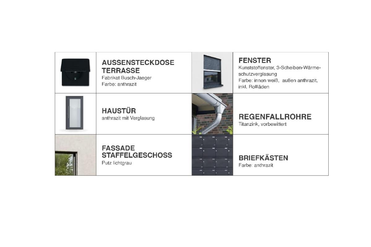 Mit einer Luft-Wasser-Wärmepumpe mit Fußbodenheizung wird Ihnen maximaler Komfort ermöglicht. Ein modernes Farb- und Materialkonzept: Ein Mix aus klassisch graphitbuntem Klinker, lichtgrauer Putzfassade und anthrazitfarbenen Fassadenelementen sorgen für ein modernes und zeitloses Erscheinungsbild.