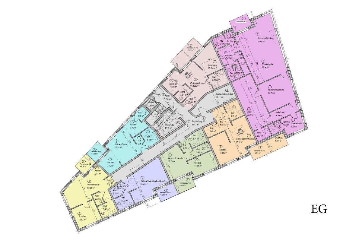 Das Tivoli bietet Ihnen ein nach Ihren Wünschen individuell ausgestaltetes Zuhause. Hauptsächlich stehen kleinere Ein- bis Zwei-Zimmer-Wohnungen zur Verfügung, die ideal für Singles, Paare oder dank der Barrierefreiheit für ältere Menschen geeignet sind. Darüber hinaus sind die Penthouse-Wohnungen als Drei- oder Vier-Zimmer-Wohnungen geplant. Die Wohnflächen reichen von 38 bis 109 Quadratmetern.