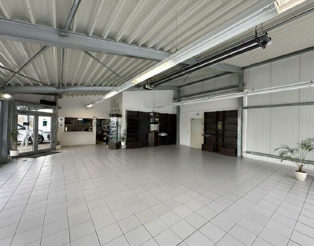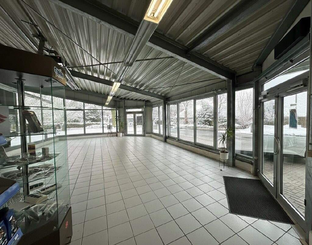 Die Räumlichkeiten gliedern sich in eine Werkstatt mit praktischen Rolltoren, einen großzügigen Verkaufs- und Ausstellungsbereich, separate Lagerflächen, ein Büro sowie einen Aufenthaltsraum mit Umkleidemöglichkeiten und Sanitäranlagen. Eine zusätzliche Garage und zahlreiche Stellplätze vor und hinter dem Gebäude ergänzen dieses attraktive Angebot.