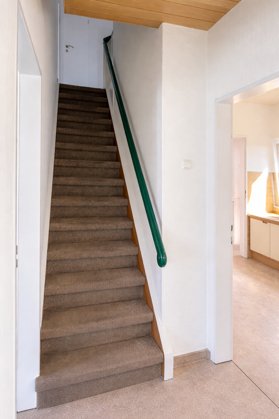 Im Erdgeschoss empfängt Dich ein großzügiges Wohnzimmer – ideal für entspannte Abende, gemeinsame Stunden oder gesellige Treffen. Die Küche ist zwar älter, aber charmant und funktional, mit genug Raum, um hier Deine eigenen Kochideen zu verwirklichen oder sie nach Deinen Vorstellungen neu zu gestalten. Von der Küche gelangst Du über einen praktischen Flur direkt in den Garten auf der Rückseite des Hauses – ein Geheimtipp für sonnige Frühstücke im Freien, Grillabende oder einfach nur, um die frische Luft zu genießen.