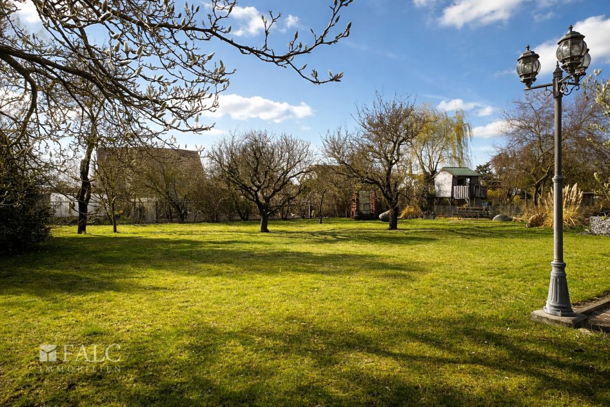 Bereits beim Betreten des Grundstücks mit großzügigen ca. 924 m² wird deutlich, dass dieses Objekt durch seine Weitläufigkeit und liebevolle Gestaltung überzeugt. Ein besonderes Highlight ist der idyllisch angelegte Teich mit kleiner Brücke, der dem Garten eine ganz besondere, ruhige Atmosphäre verleiht.
