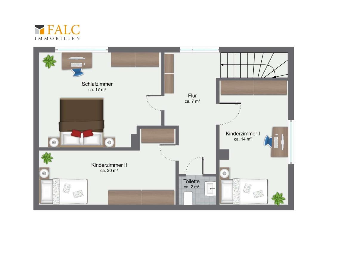 Das Haus bietet insgesamt viel Platz für die ganze Familie. Besonders hervorzuheben sind die individuell ausgebauten Kinderzimmer, in denen zusätzliche kleine Dachräume integriert wurden. Diese schaffen nicht nur zusätzlichen Stauraum, sondern auch gemütliche Rückzugsorte mit besonderem Charme.