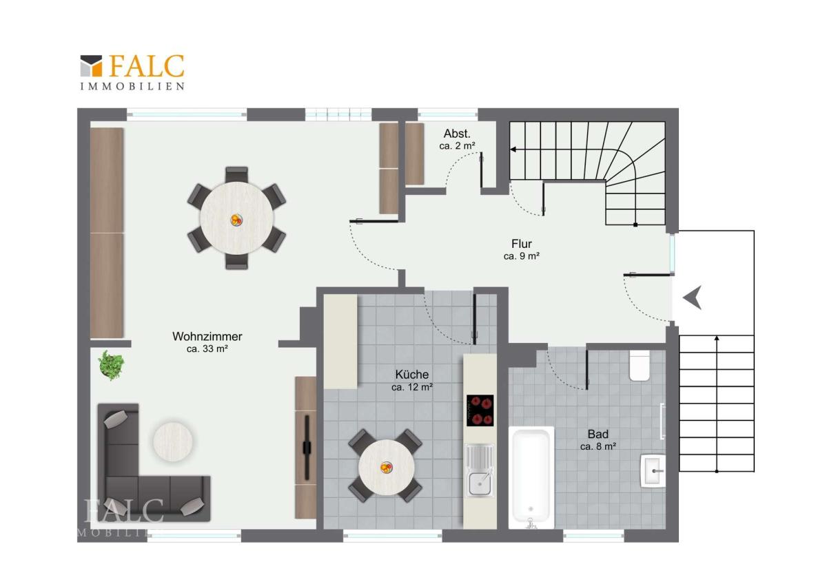 Die in diesem Exposé enthaltenen Fotos können ganz oder teilweise unter Einsatz digitaler Bildbearbeitung und/oder künstlicher Intelligenz (KI) erstellt oder optimiert worden sein. Sie dienen ausschließlich der Veranschaulichung. Verbindlich sind nur die tatsächlichen Gegebenheiten bei einer Besichtigung vor Ort.