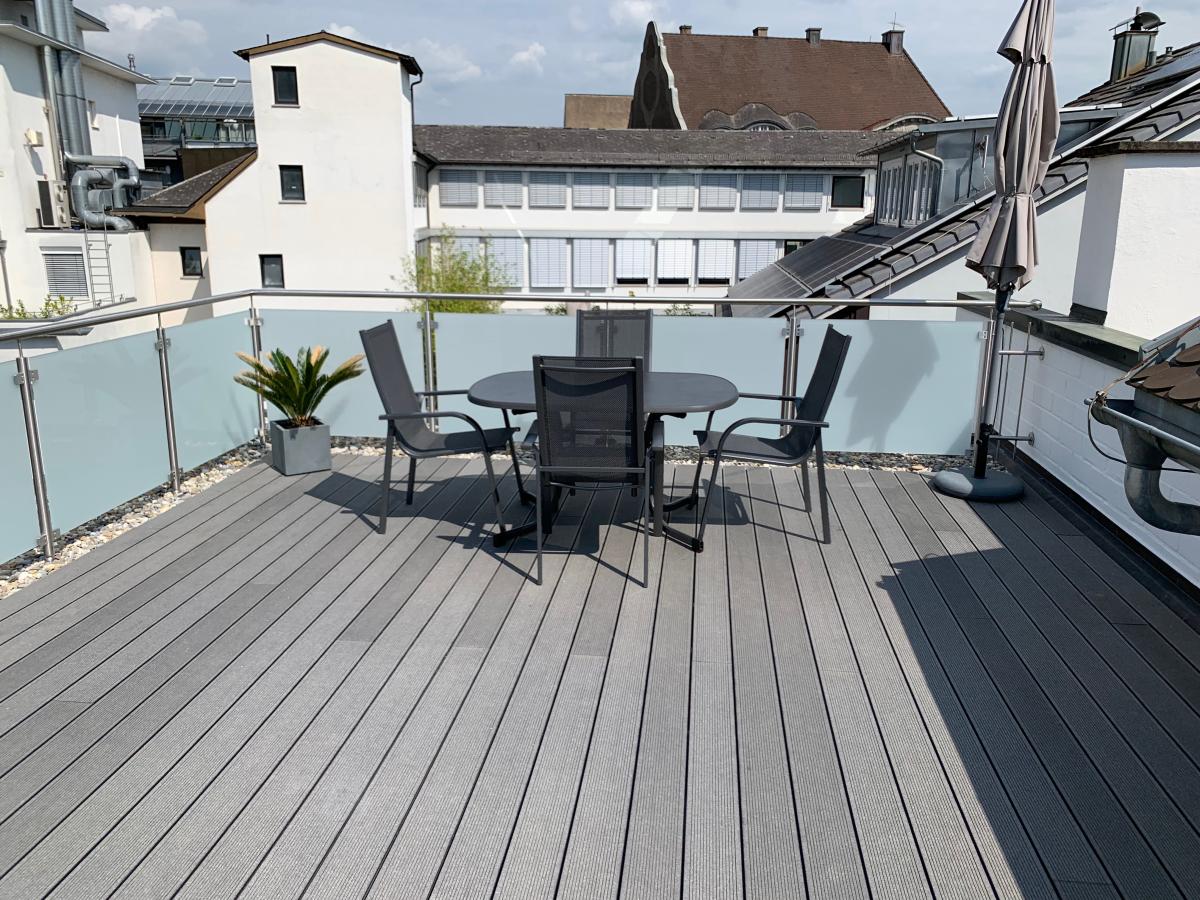Auf der neugestalteten großenDachterrasse mit Fernsicht lässt es sich wunderbar vom Alltagsstress erholen.